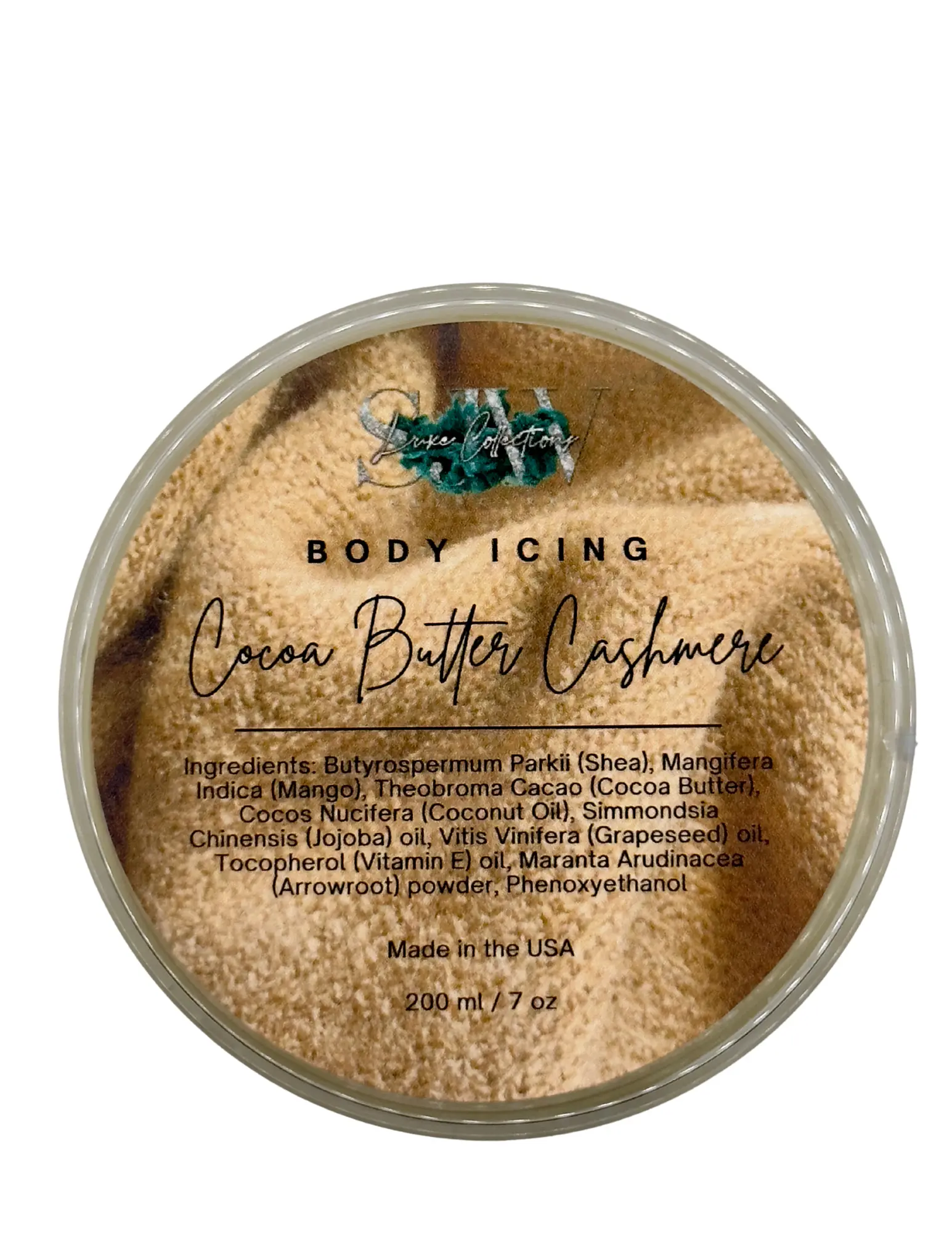 Take your skincare to the next level with our Cocoa Butter Cashmere Luxury Body Butter. Made with luscious cocoa butter, it melts on your skin for deep nourishment and hydration. This body butter offers a luxurious indulgence, giving you a touch of cashmere-level softness. Pamper yourself with this exquisite product!