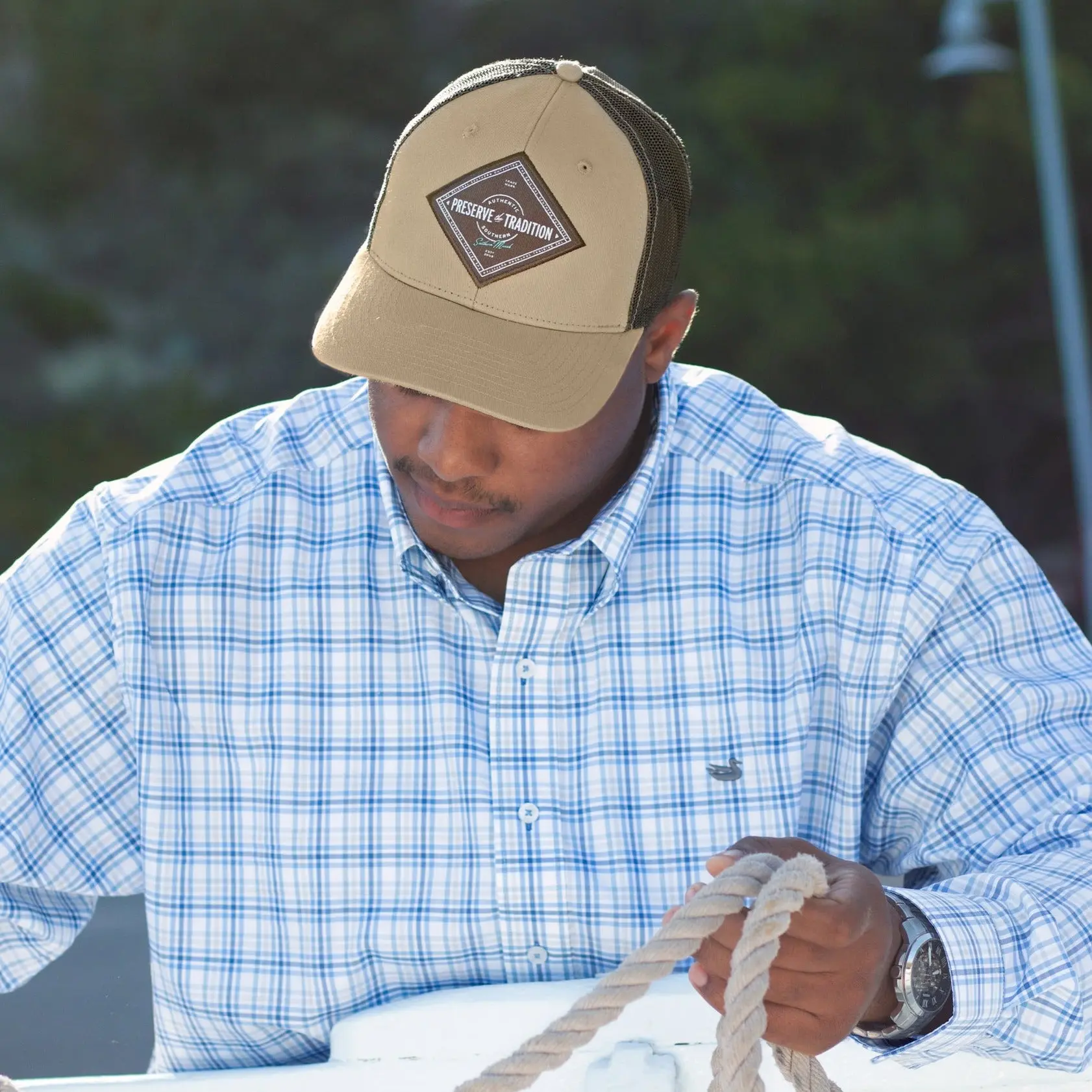 Southern Marsh remains committed to "Preserve the Tradition" of all of the great things that make the South special. Crafted with a soft cotton body and breathable polyester mesh back, this cap will keep cool and comfortable all day. Finished with embroidered silhouette logo on the back, and an adjustable velcro strap to create the perfect fit.