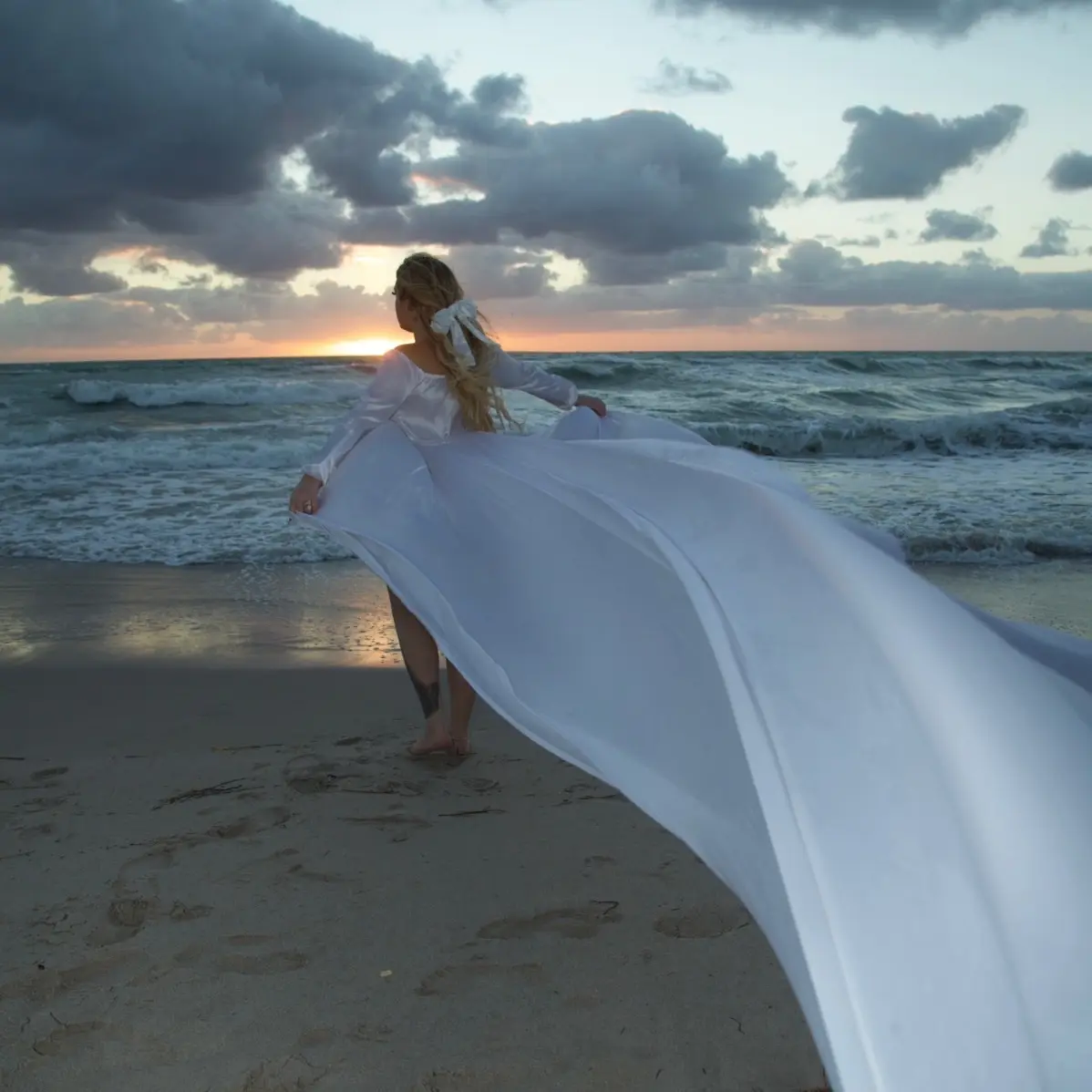 white dress on the beach