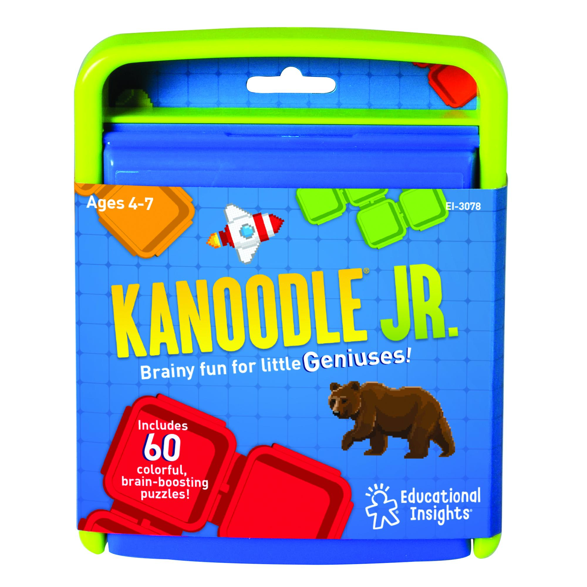 Β·JUNIOR VERSION OF BESTSELLING KANOODLE! Puzzle play isnβt just for the big kids anymore! Kanoodle Jr. is 60 head-scratching challenges made for kids ages 4-7. Includes puzzle board, 6 chunky puzzle pieces, and booklet with 60 challenges
