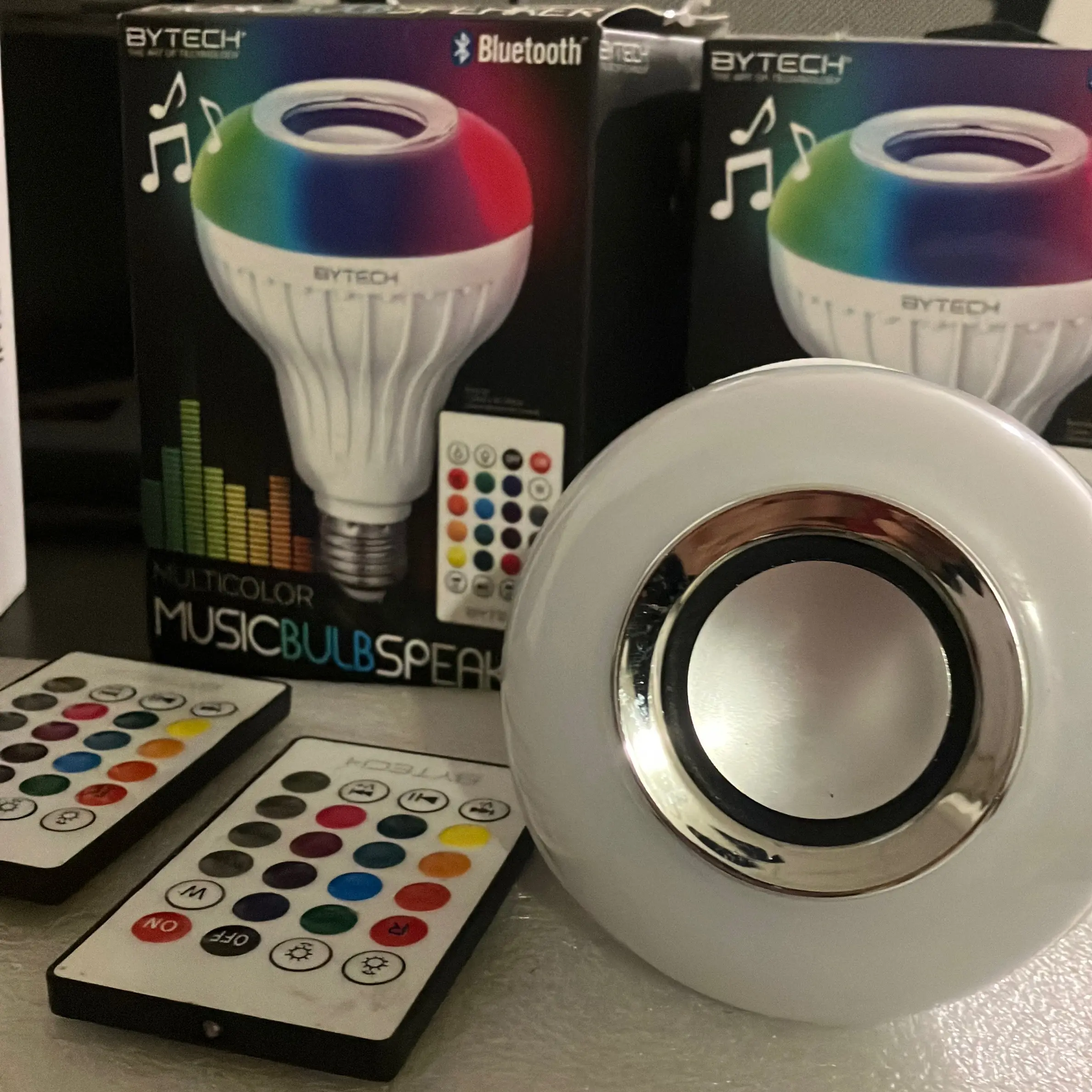 Ever wished your light bulb could play your favorite tunes? Meet the Bluetooth Bulb Speaker, your new multitasking home companion! This clever device combines an energy-efficient LED light with a built-in speaker, so you get bright illumination and crisp, high-quality sound all in one. Installation is a breeze—just screw it into any standard socket, and you're set to stream music wirelessly from your smartphone or other Bluetooth-enabled devices. Whether you’re setting the mood for a cozy evening or need background music while working, this bulb speaker fits right into your lifestyle and decor. The sound quality is impressive, offering clear treble and deep bass to enhance your audio experience. Plus, its sleek design blends seamlessly with any room style without cluttering your space. Inside the box, you’ll find the Bluetooth Bulb Speaker ready to light up your life and soundtrack your day. Ready to upgrade your home with a smart, stylish twist? Grab this Bluetooth Bulb Speaker and enjoy music and light in perfect harmony!