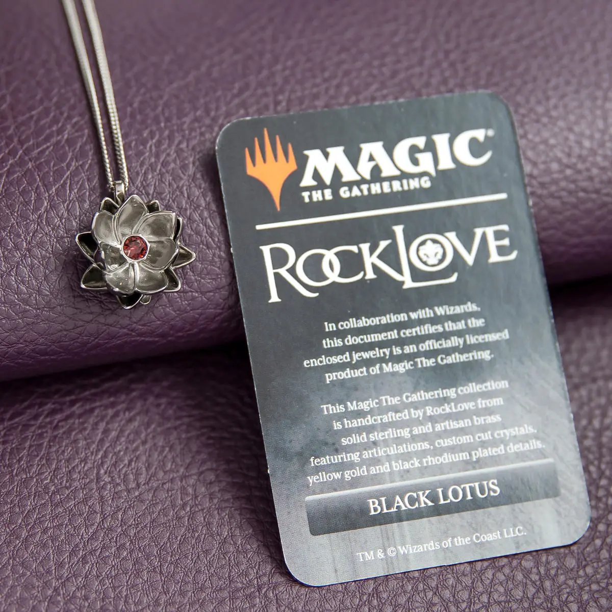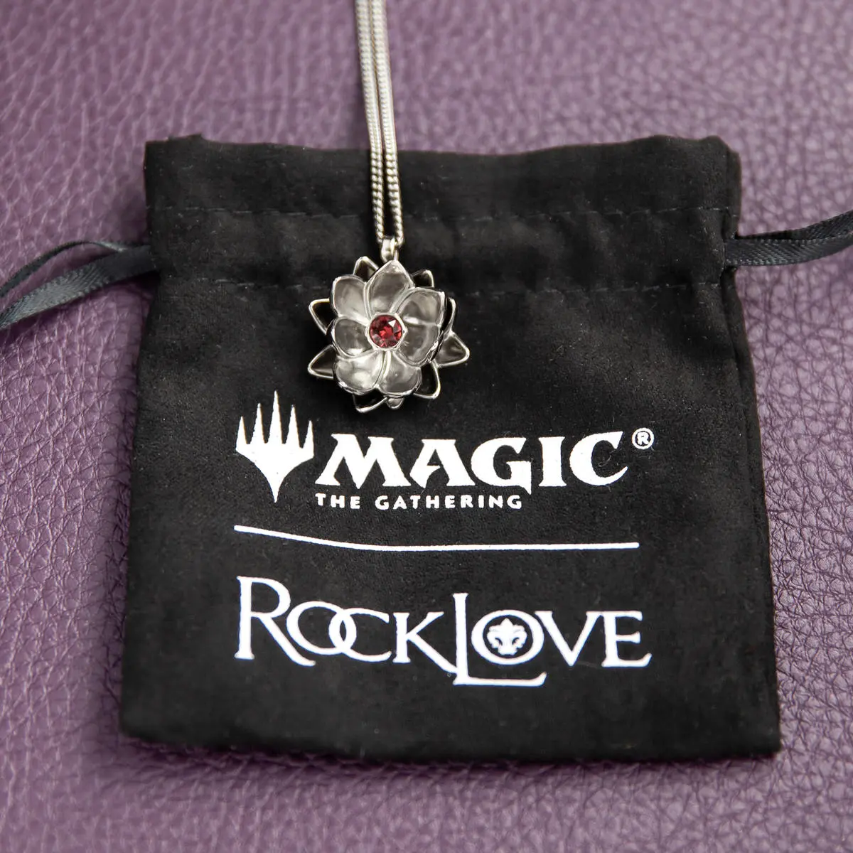 An exquisite treasure, the Black Lotus has long been considered the most valuable Magic: The Gathering card. Part of the Power Nine, the Lotus is highly regarded for its ability to accelerate mana and cast powerful spells in the defeat of one’s adversary. An homage to the fantastical illustrations created by the late artist, Christopher Rush, RockLove is honored to bring the Black Lotus to life in this official licensed Magic: The Gathering X RockLove Black Lotus Crystal Necklace.