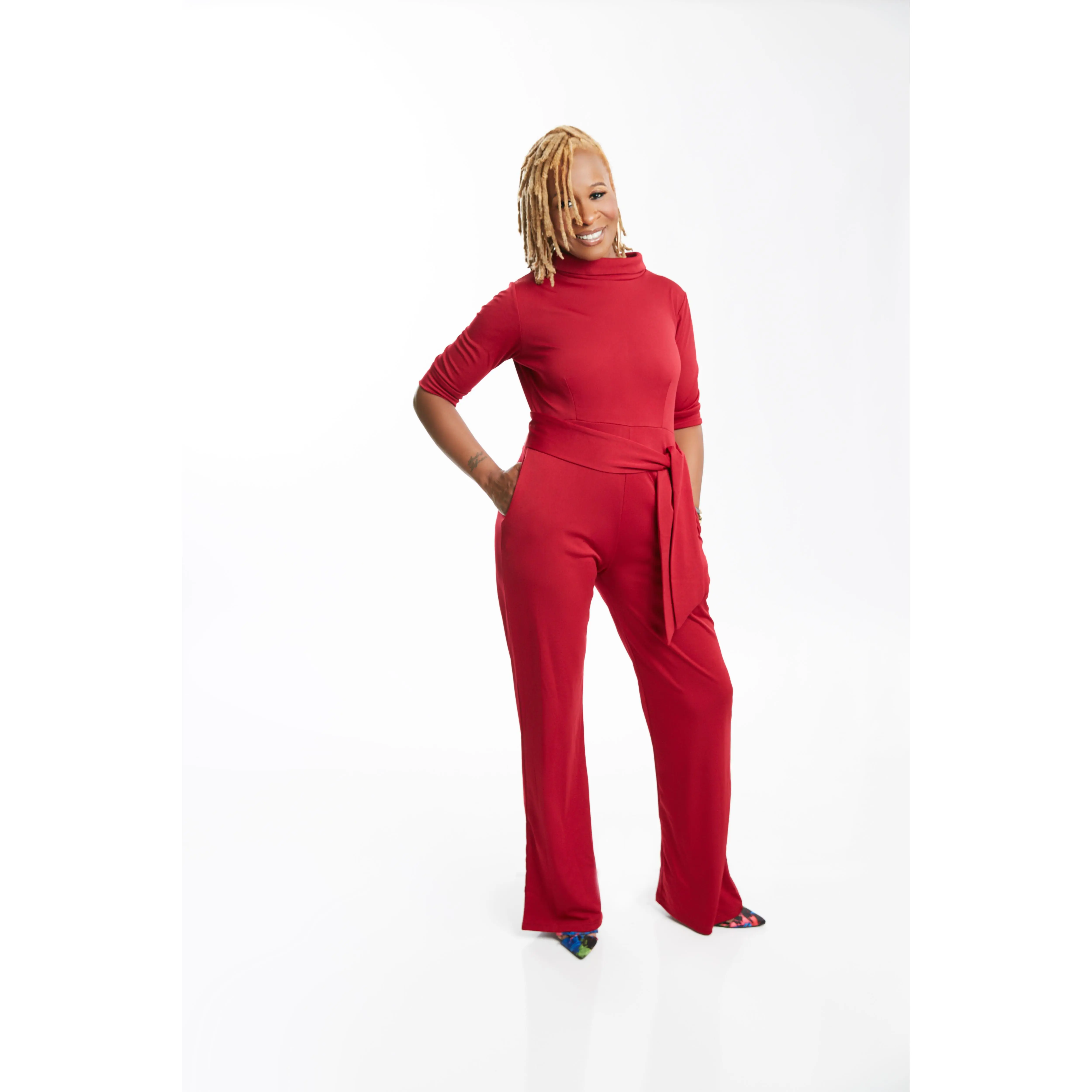 red jumpsuit outfit