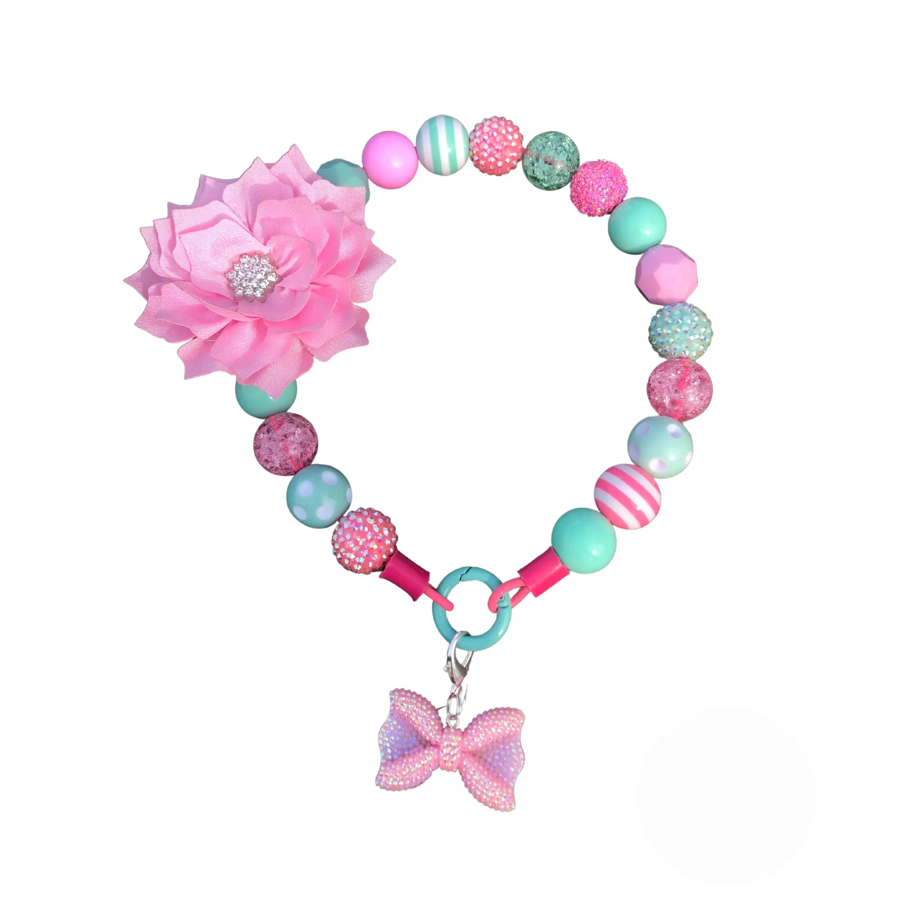 Pink & Mint Beaded Dog Collar | Custom Pearl Dog Collars | Durable Dog Necklace | Luxury Dog Jewelry |