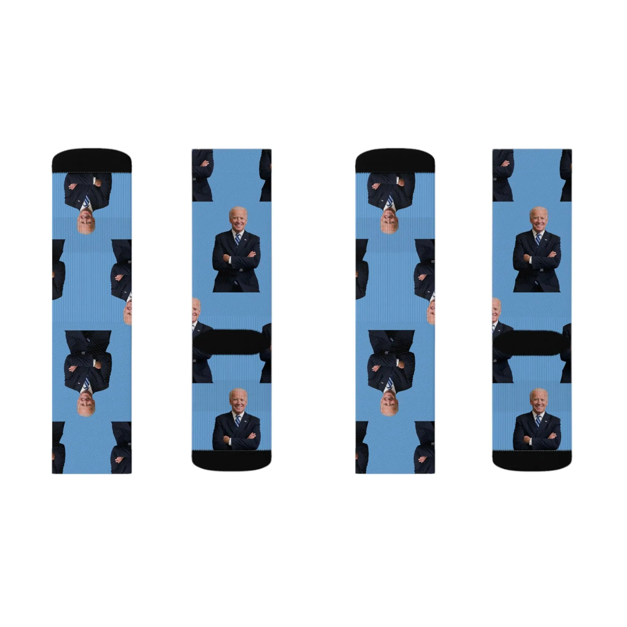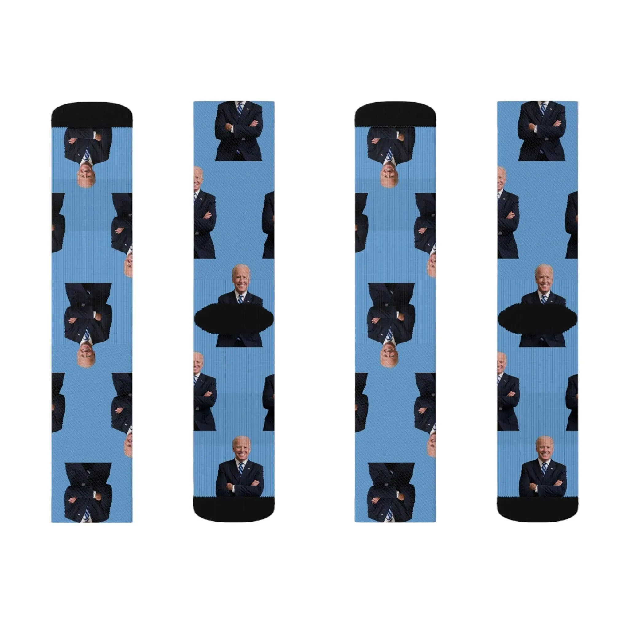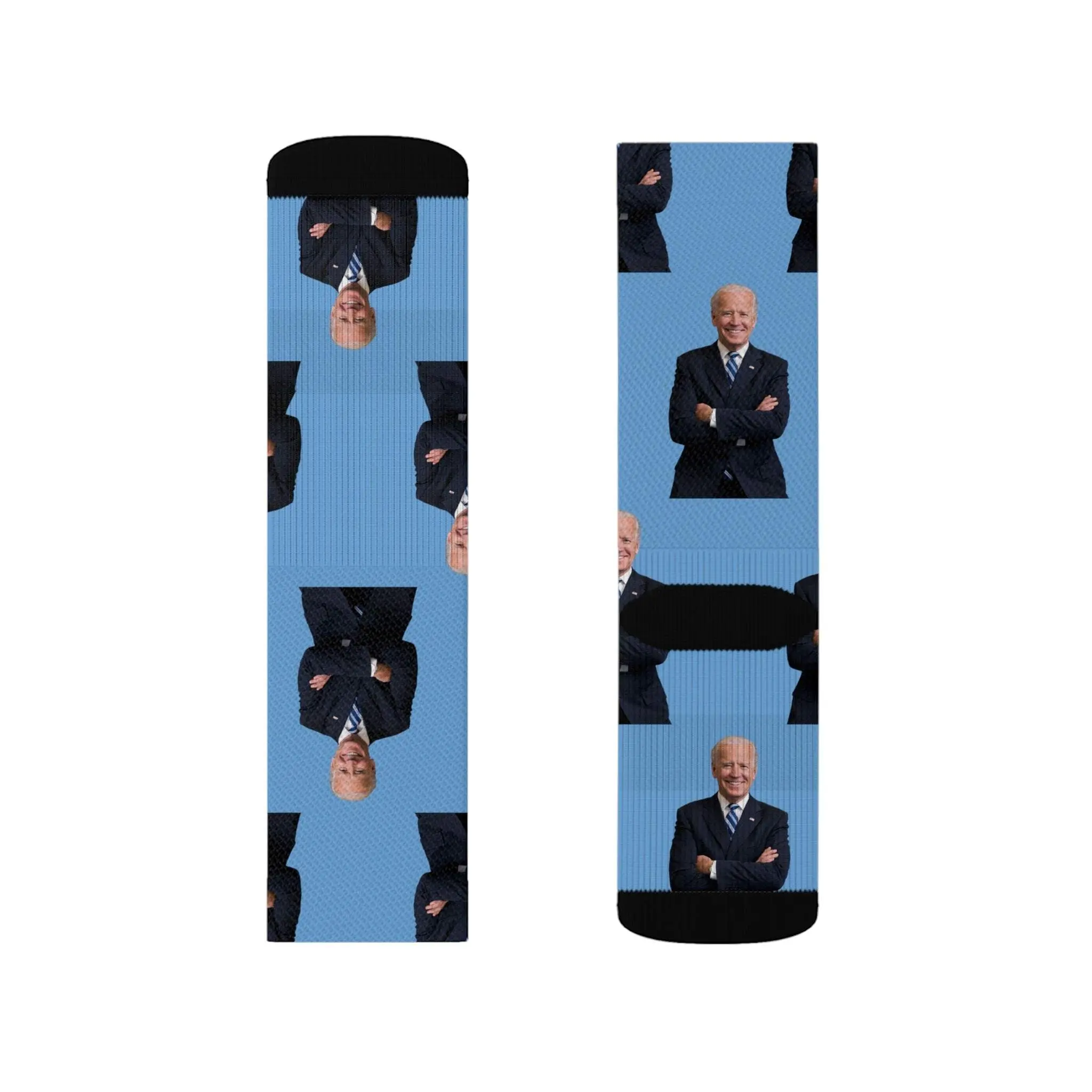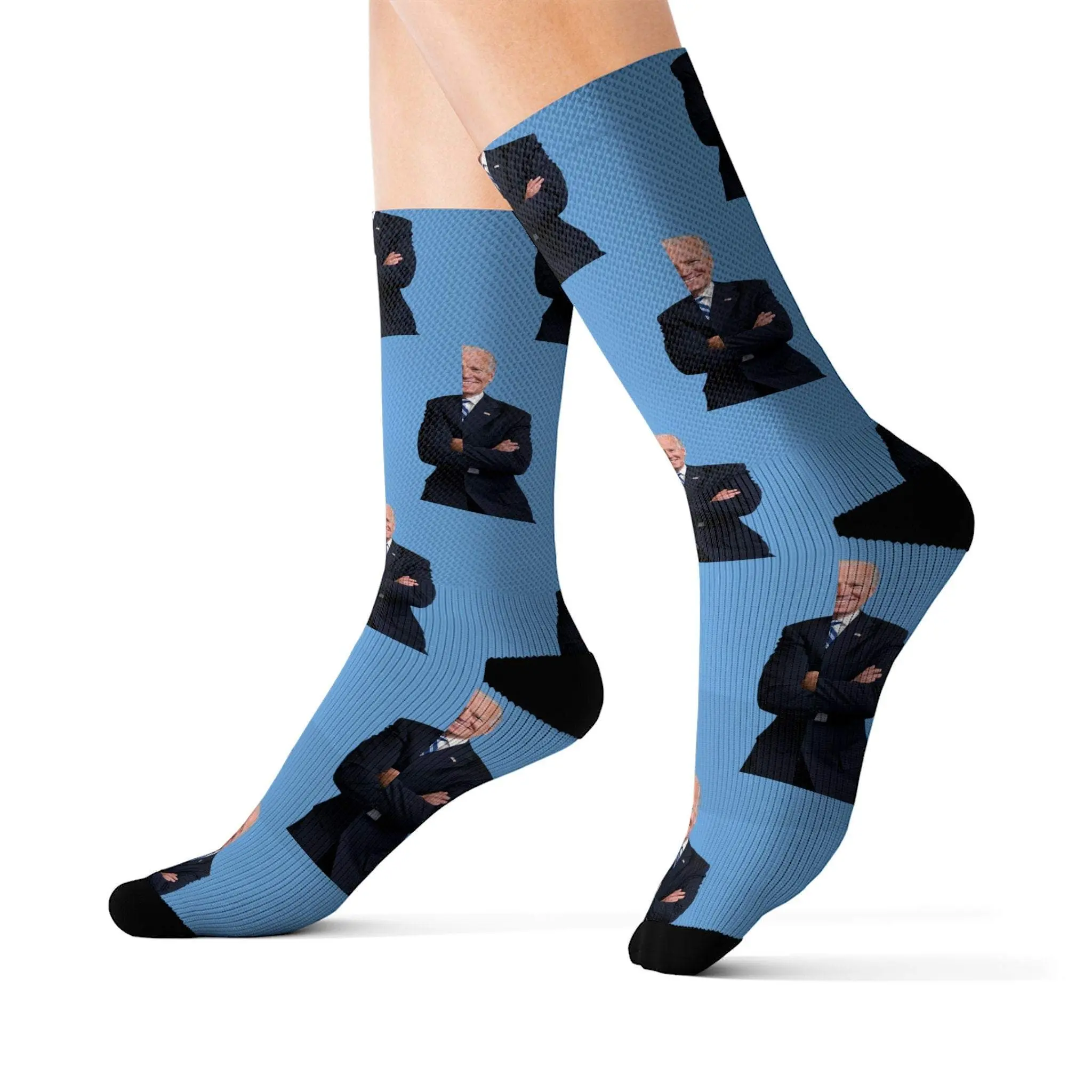 Meet our Joe Biden Politics Sock! in the signature Democrat Blue: Striding Forward, United in Hope. These socks are a tribute to President Joe Biden's steadfast leadership and dedication to unity. Crafted in the iconic Democrat Blue hue, they symbolize stability, harmony, and progress.