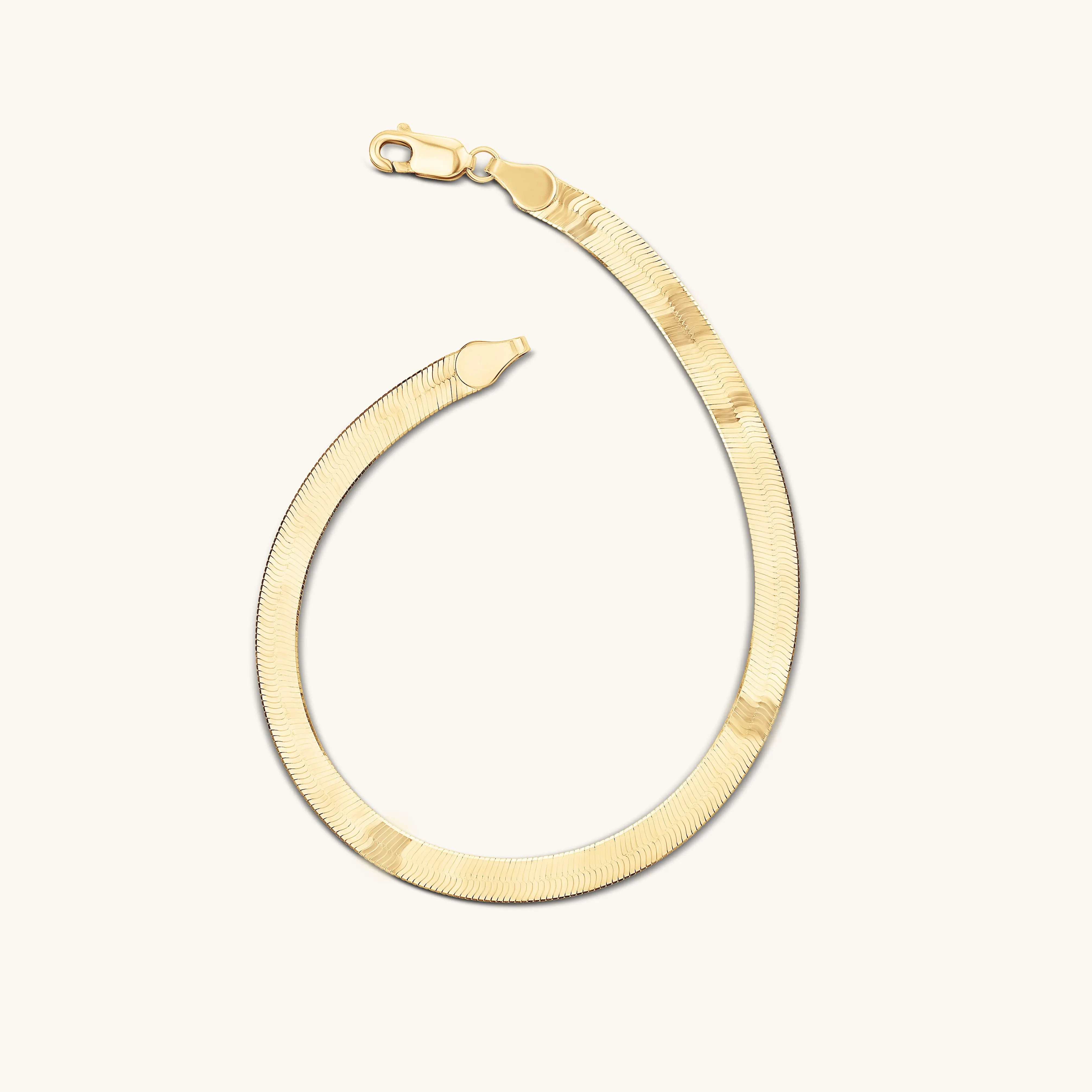 This signature staple Herringbone Snake Chain Bracelet is a no brainer basic piece that you’ll need for your everyday wear. This bracelet pairs perfectly with any outfit and works well solo or layered with other accessories. Available in Sterling Silver, Gold Vermeil, 10K, and 14k Gold.