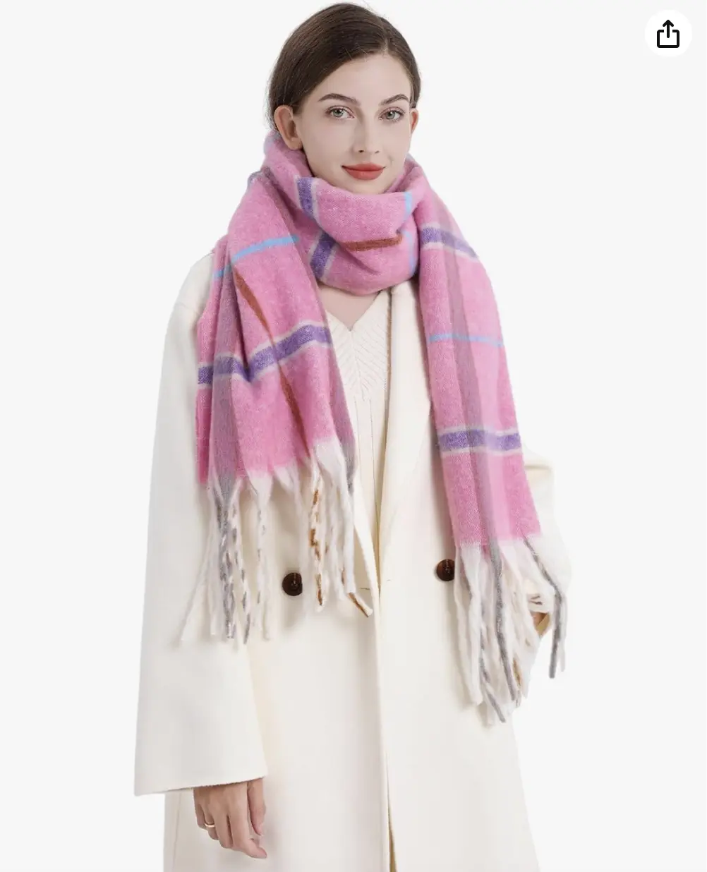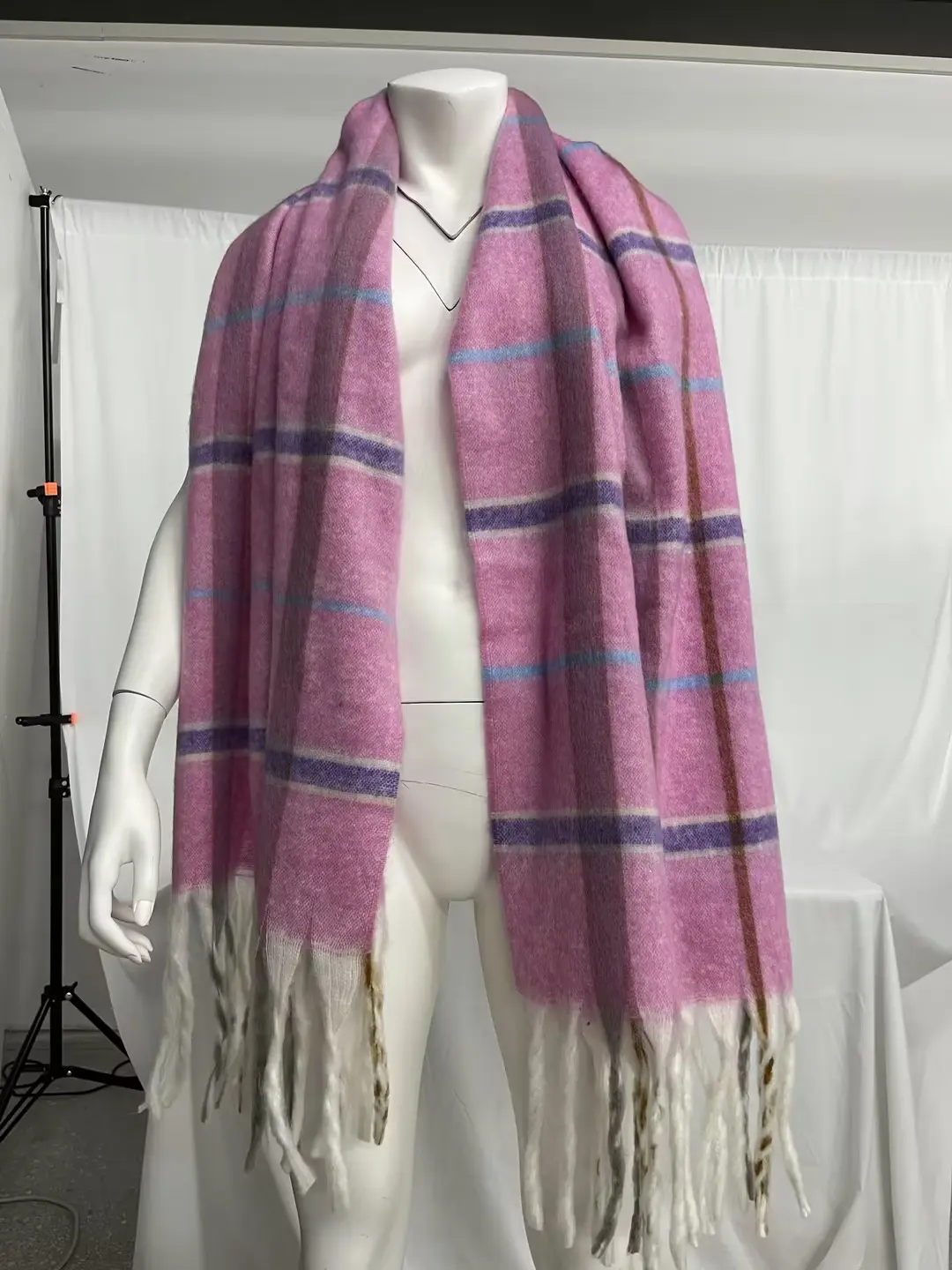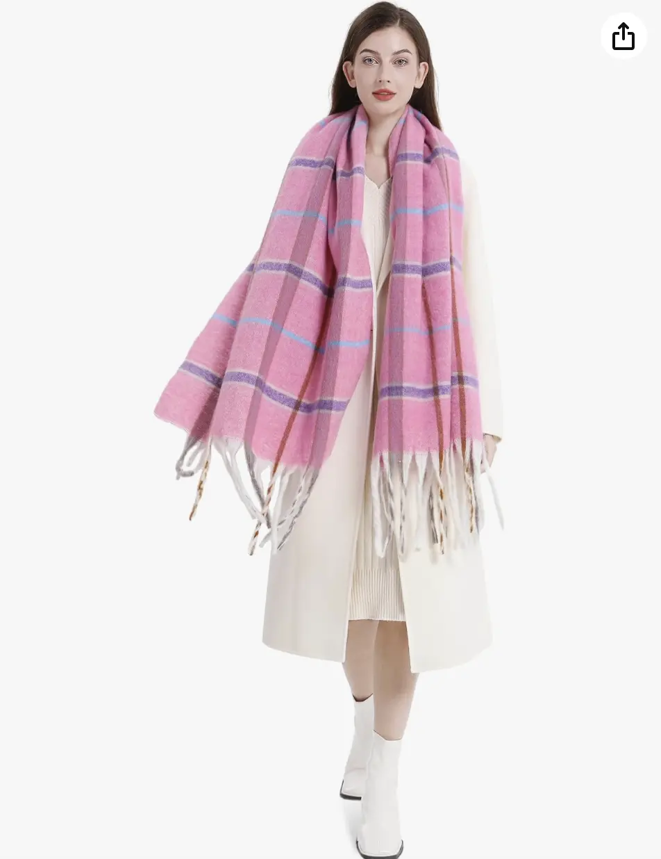 ·Gorgeous Plaid Pattern: The pink plaid design of this shawl adds elegance to any outfit while keeping you warm on chilly days/nights