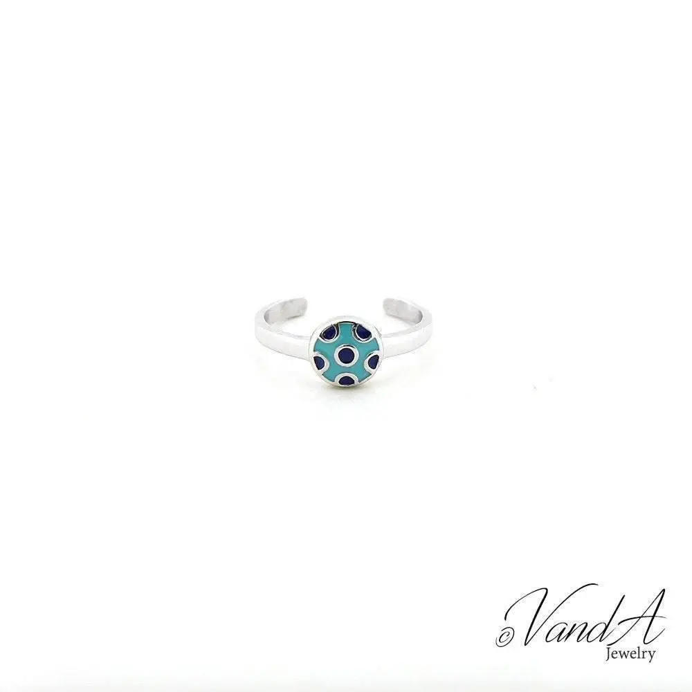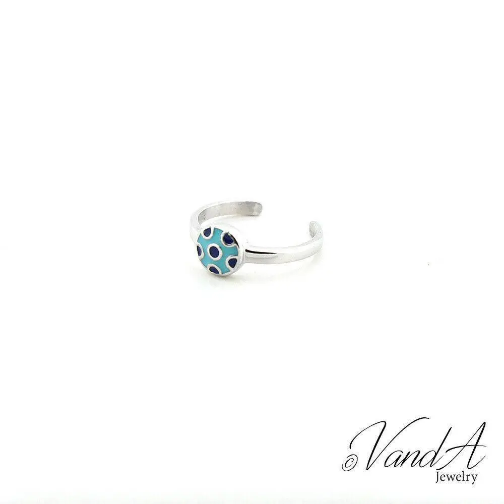 Sterling Silver 925 Round Shape Enameled Adjustable Toe Ring