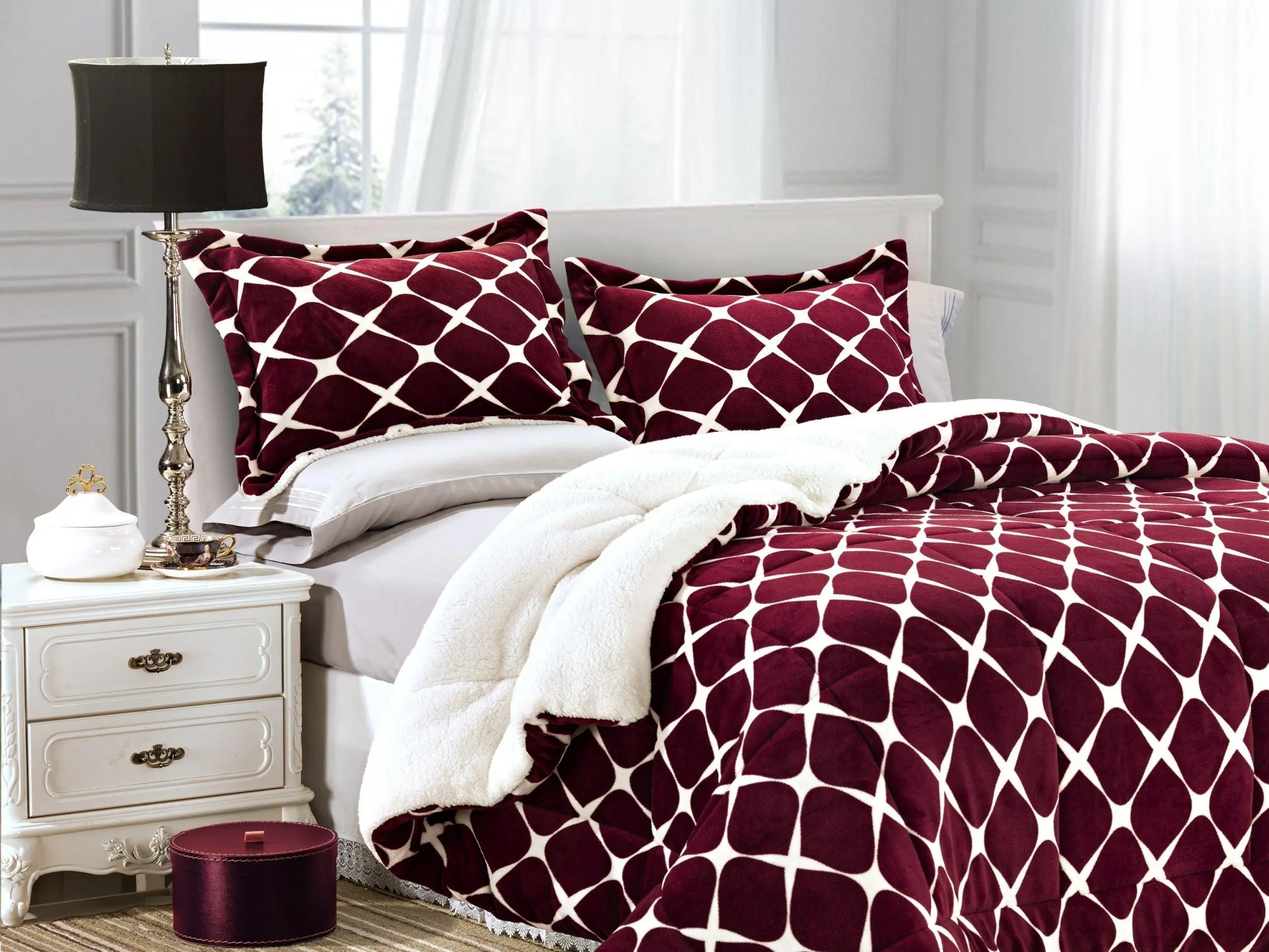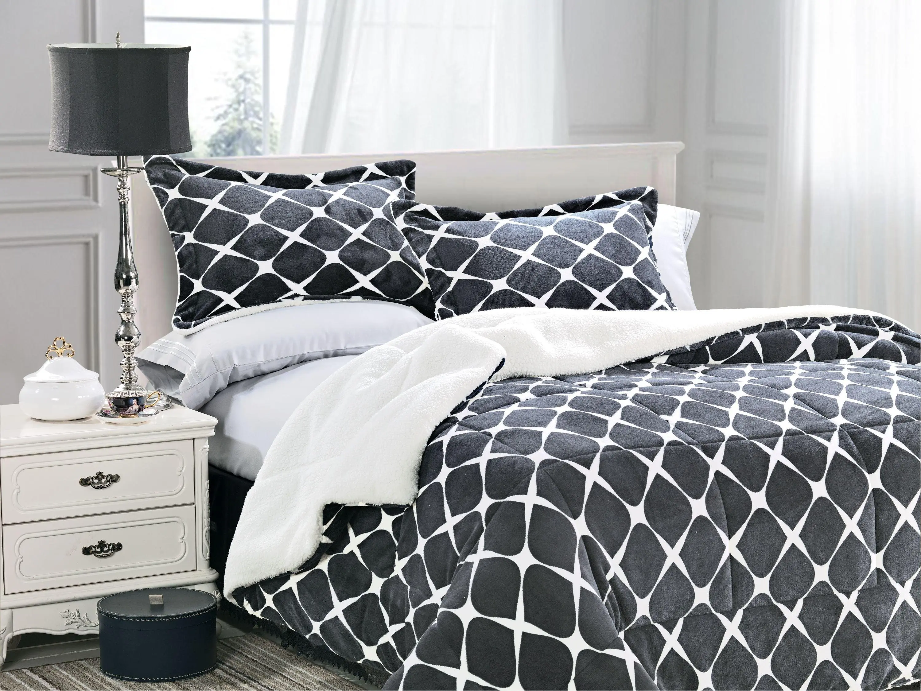 Elevate your bedroom with this ultra-cozy and stylish comforter set, designed with a reversible micro mink sherpa and microsuede flannel velvet touch for luxurious softness and warmth.