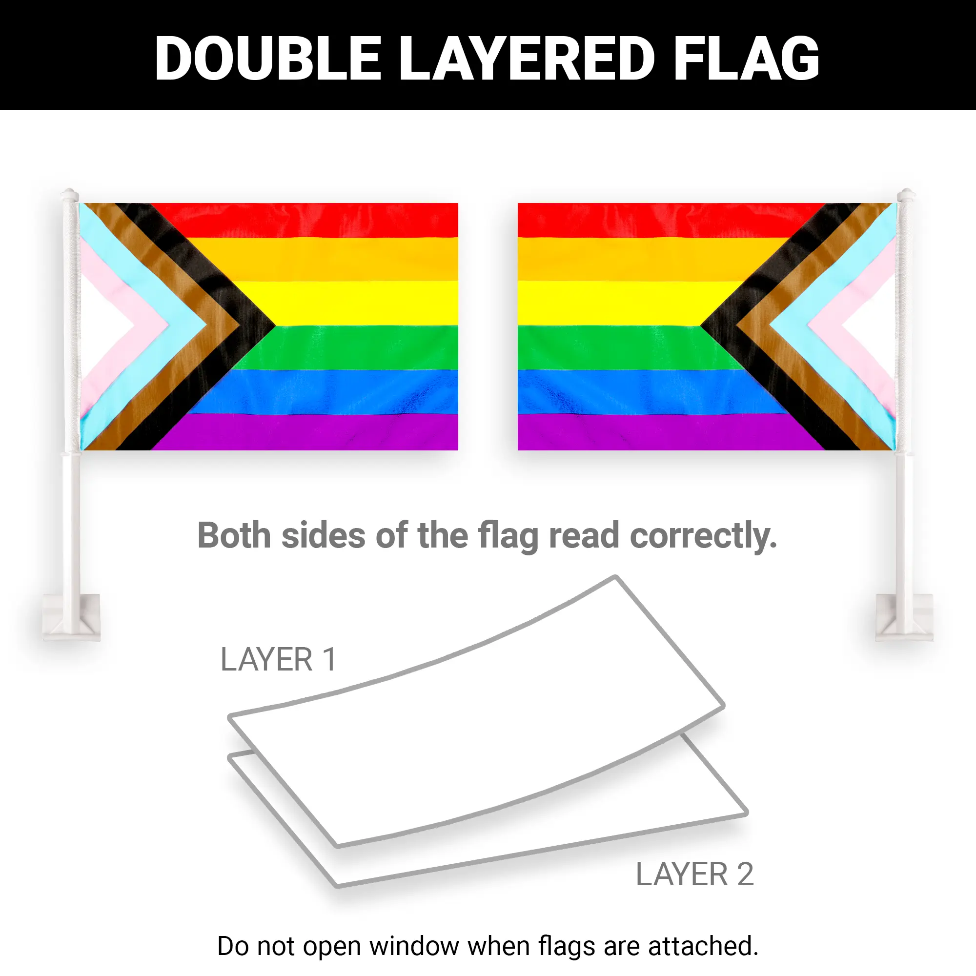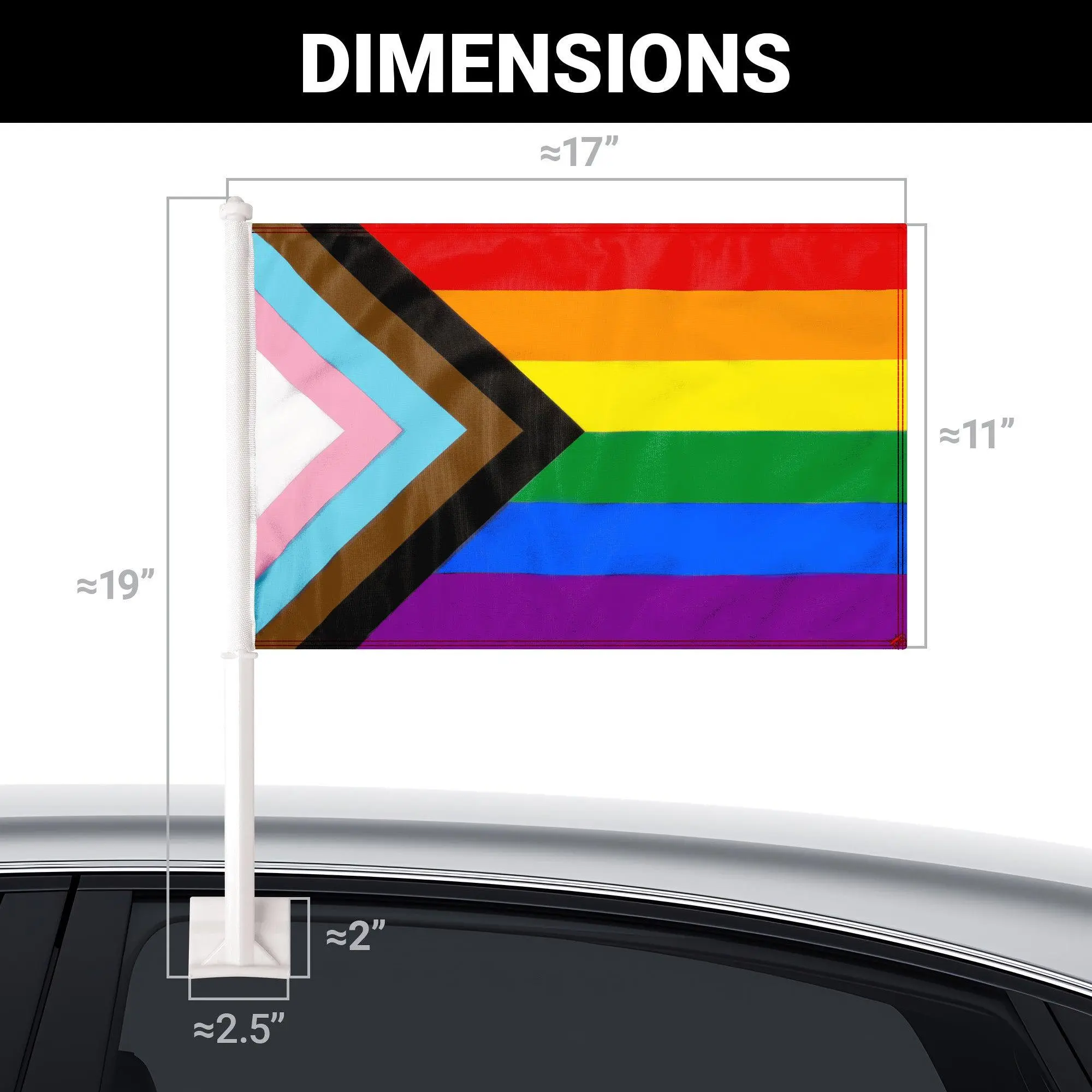 G128 2 Pack: LGBT Progress Rainbow Pride Car Flag | 11x17 In | Double LiteWeave Pro Series Double Sided Printed 150D Polyester | Flagpole Included | Perfect for Festival Celebrations, Parades