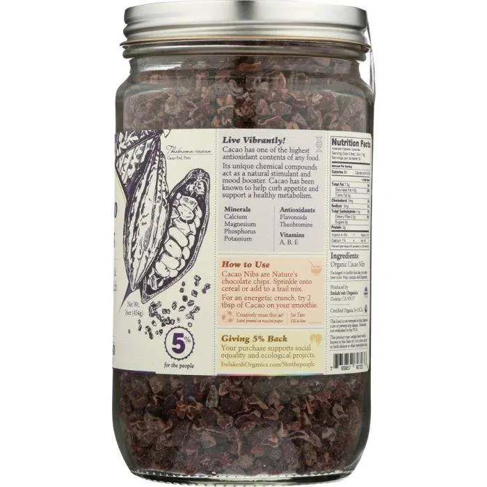 These are Nature’s Chocolate ChipsCacao nibs are simply the natural crumbles of the crushed cacao bean: nothing added or taken away! Sprinkle them over sweet treats or munch by the handful for an energizing, mood-enhancing superfood boost!