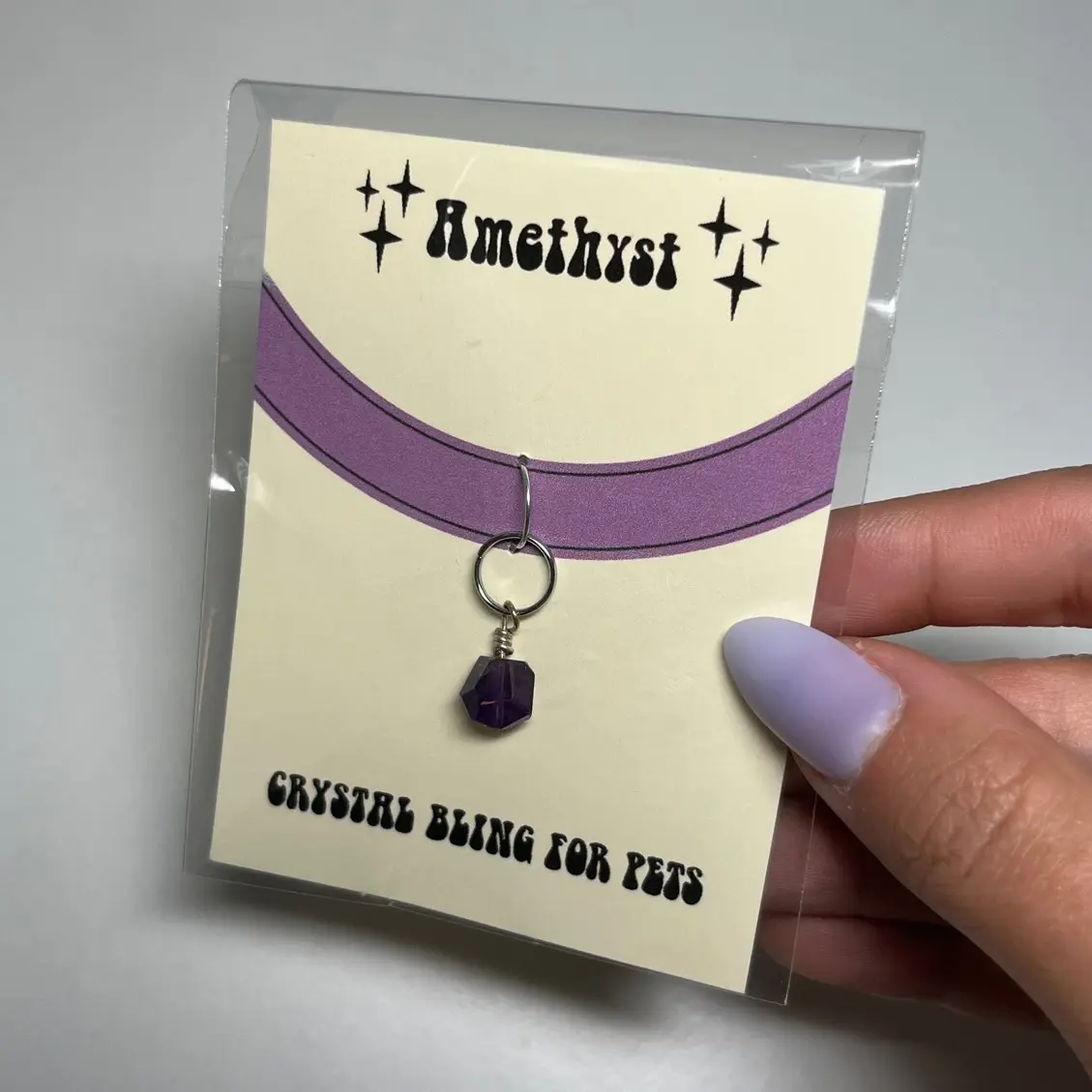Add some sparkle to your furry friend's collar with a handmade amethyst or rose quartz crystal collar charm! This charm adds a touch of elegance and personality to your pet's look. The charm you receive can vary slightly from the one in the photos.