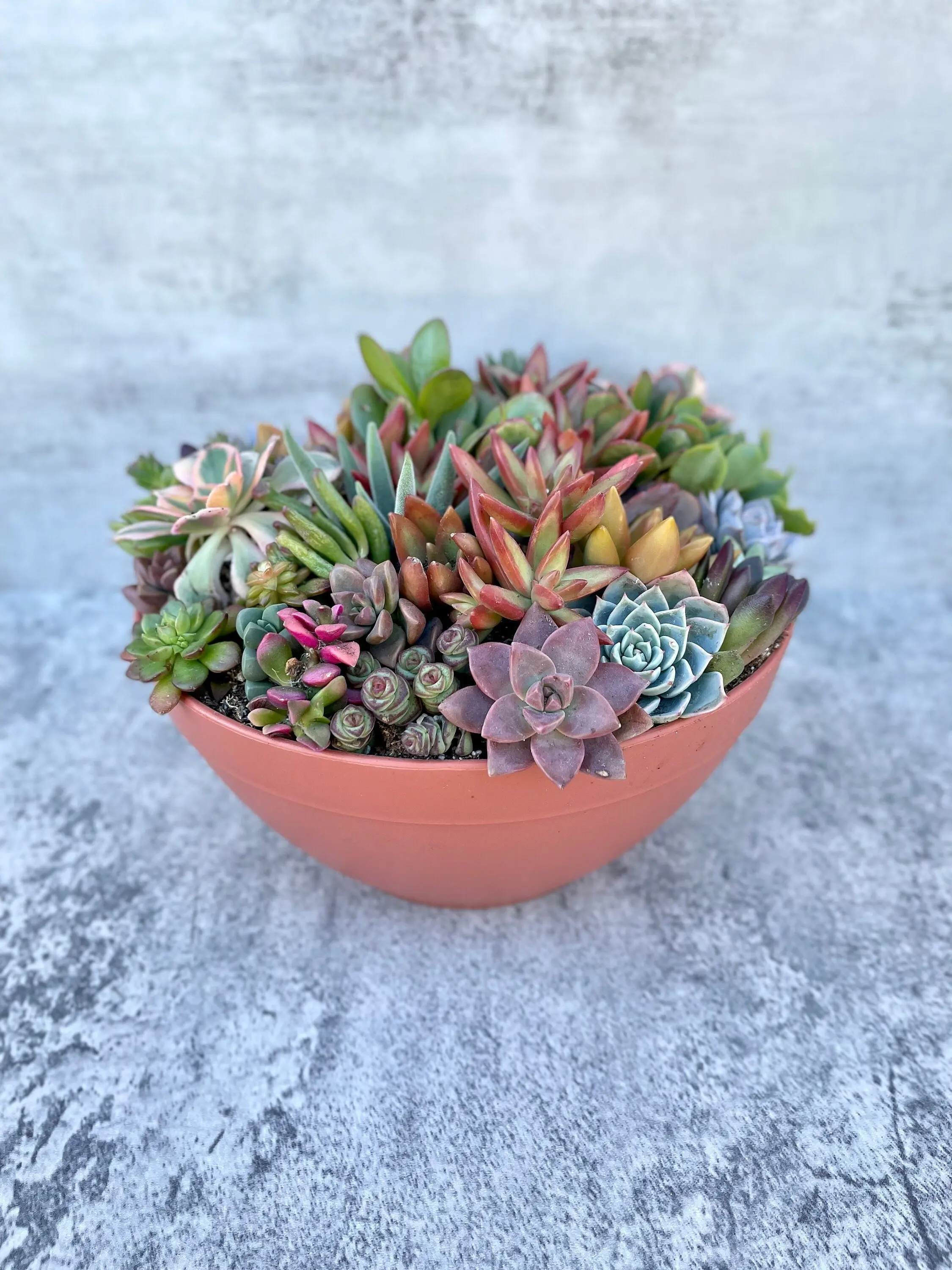 Drift away with the Point Loma Succulent Garden. Featuring a live assortment of densely planted succulents in a beautiful large bowl. A perfect centerpiece that will capture everyone's attention at any dinner or event! The Point Loma is also a great gift! Make sure to include a message at checkout if gifting this beautiful arrangement! :)