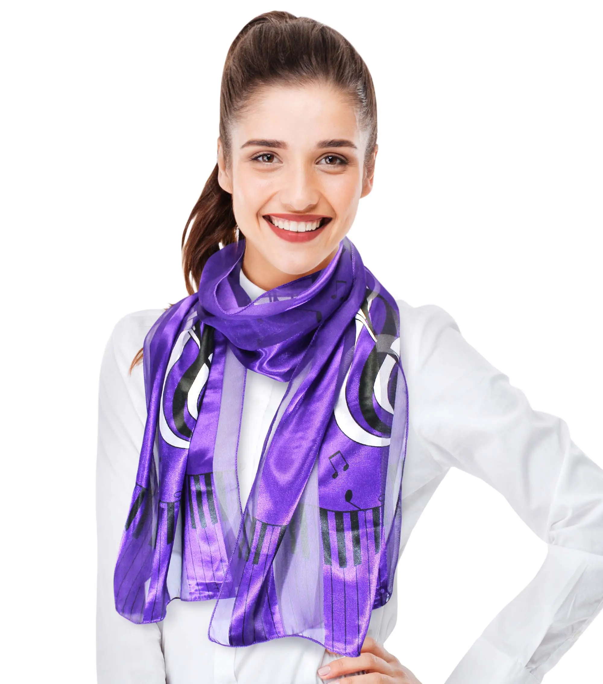 CBC Crown Lightweight Large Treble Clef Design Silk Feeling Music Scarf - Purple