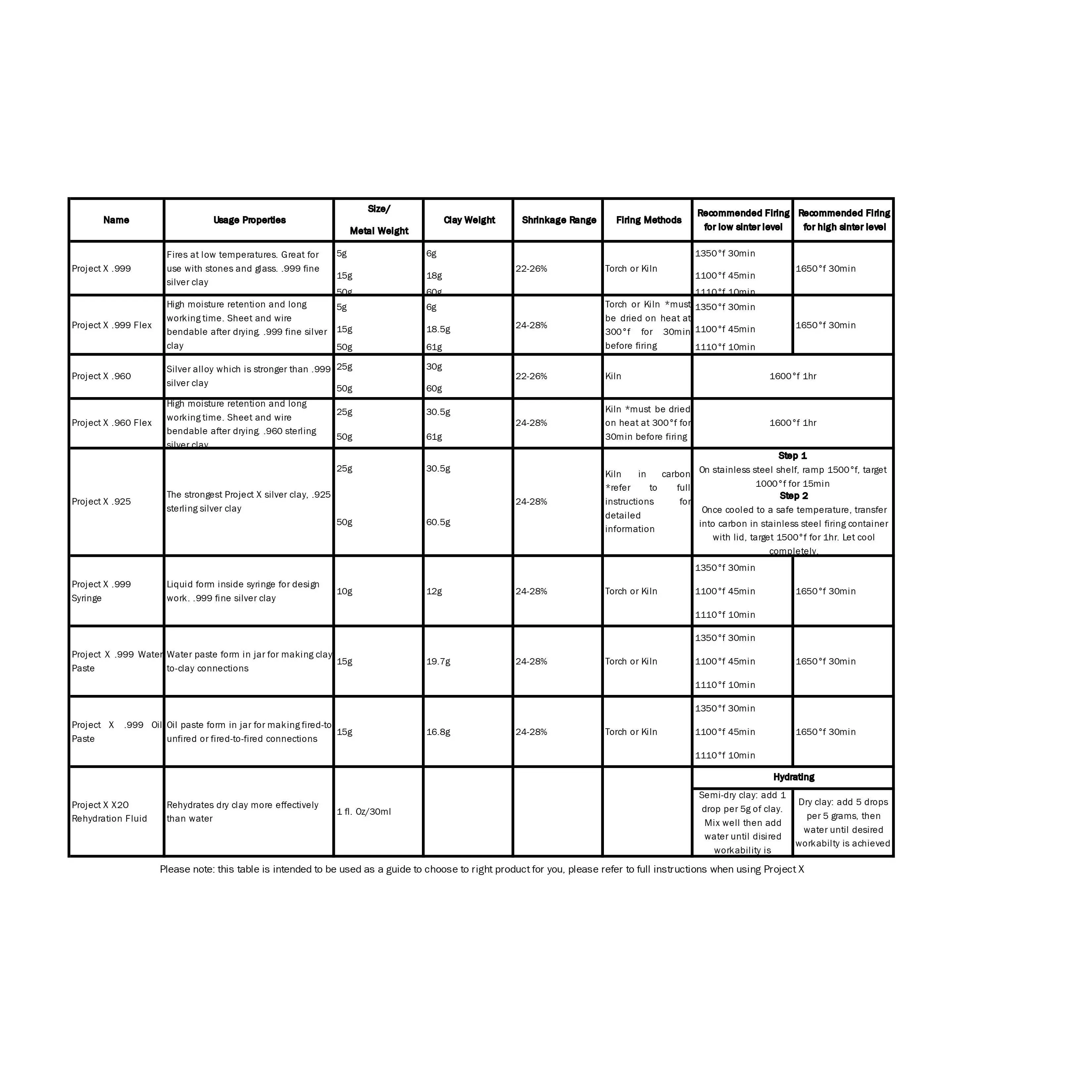 Project X .960 Flex Silver Clay will remain slightly bendable after drying in open air. Dry, open air, for at least 30 minutes before proceeding with bending. Heat at 300°F/148°C for 30 minutes to harden the clay. Heat at 300°F/148°C for 30 minutes before firing the clay to ensure no moisture remains.