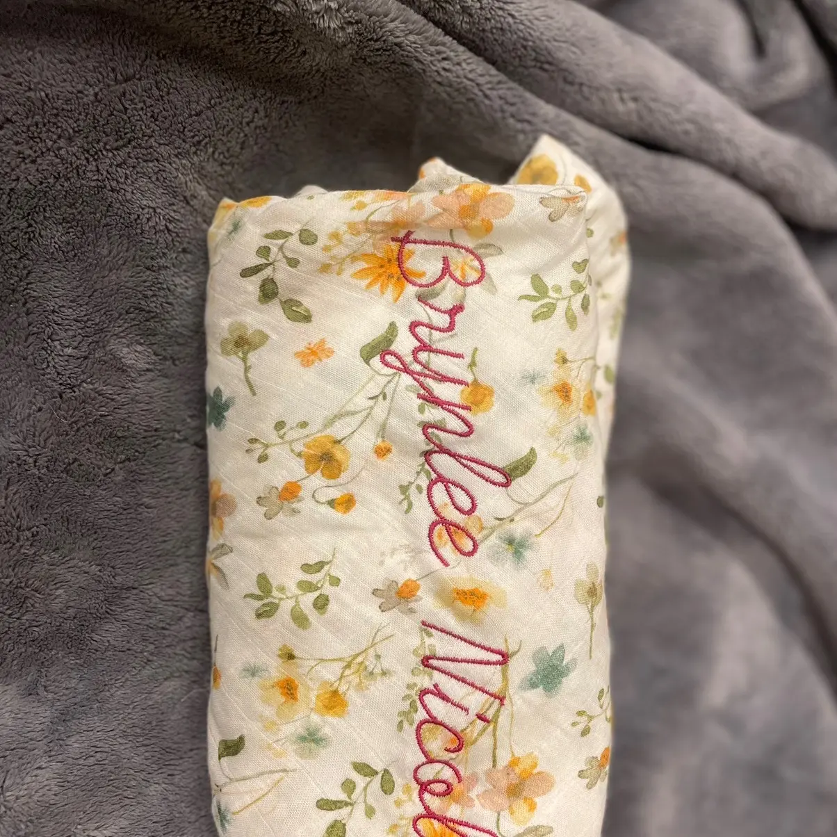 The highlight of this enchanting blanket is the personalized touch it brings with embroidered detailing. Your baby's name will be delicately stitched onto the fabric, adding a heartfelt and unique element that makes this blanket truly one-of-a-kind.