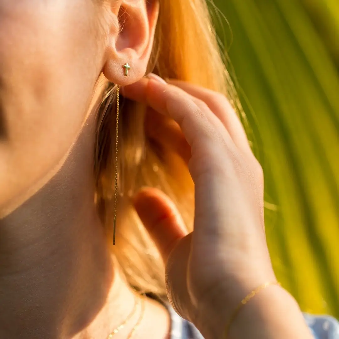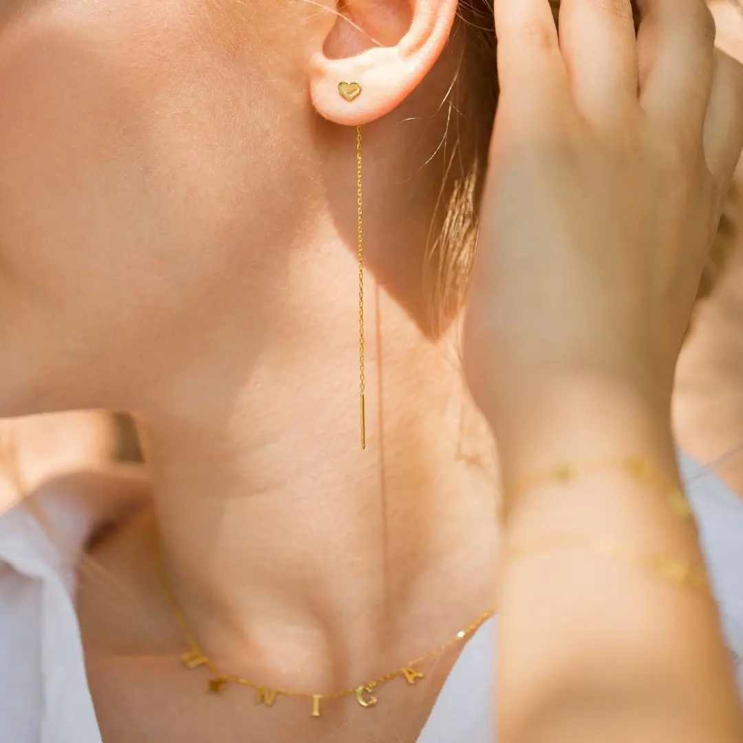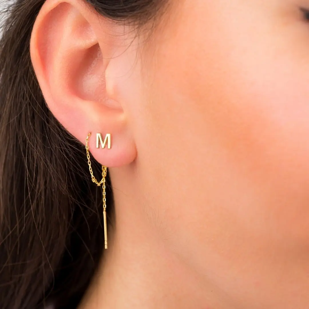 Introducing our Letter Threader Earrings, a blend of sophistication and personalization. Crafted with precision and finesse, each earring features a delicate thread adorned with a customizable letter charm. Made from high-quality materials, these earrings offer lightweight comfort and durability, perfect for all-day wear.