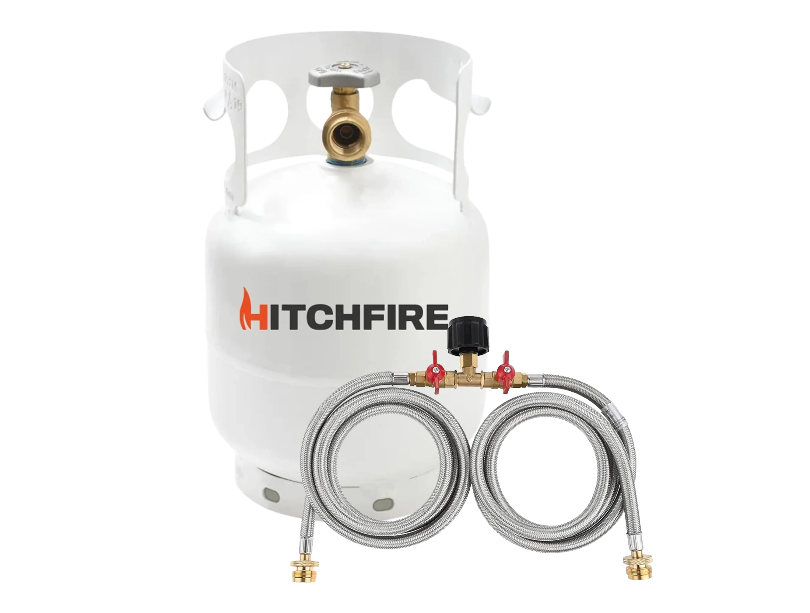 Millions of single-use propane bottles end up in landfills each year. The HitchFire 5lb Refillable Propane Tank is a low-waste solution for heating and cooking on the go. The tank is smaller, lighter and more convenient than the big backyard BBQ tanks and easily connects to stoves, grills and heaters that use propane. Pair it with the HitchFire Propane Adapter Hose to hook up the 5lb tank to the dual regulators on your HitchFire grill.