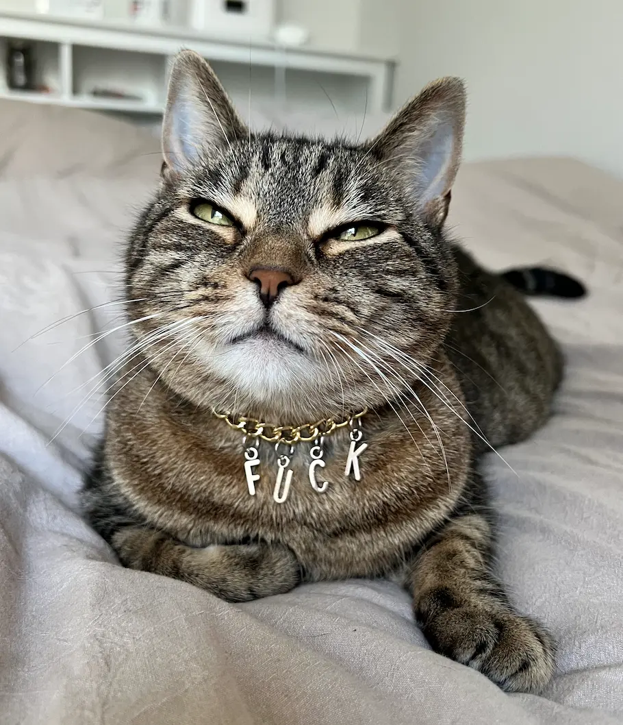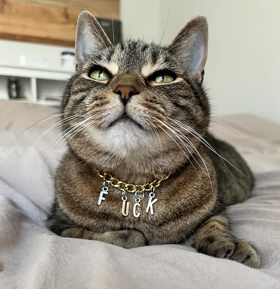 This Pet Collar is for the bold and daring pet owners out there! With its gold chain and silver F*CK letters, your pet will definitely make a statement.