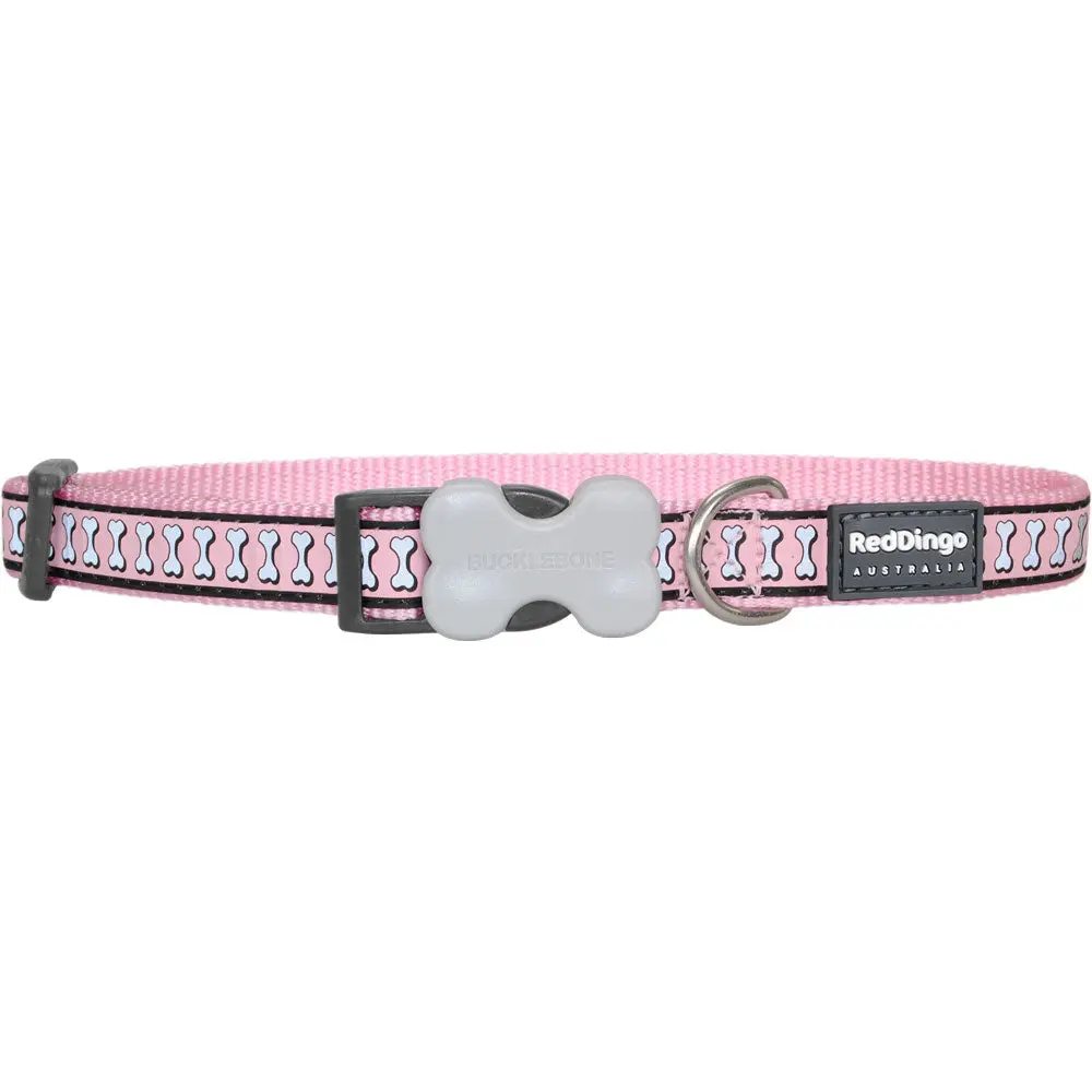 Reflective Bones Pink Dog Collar
