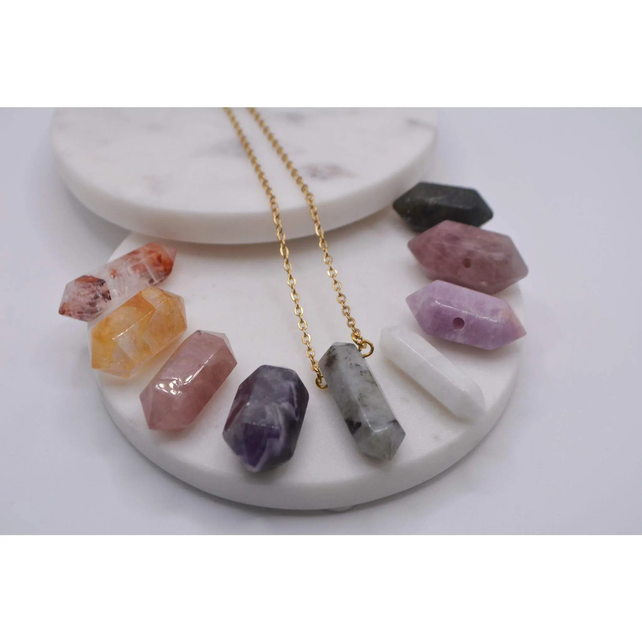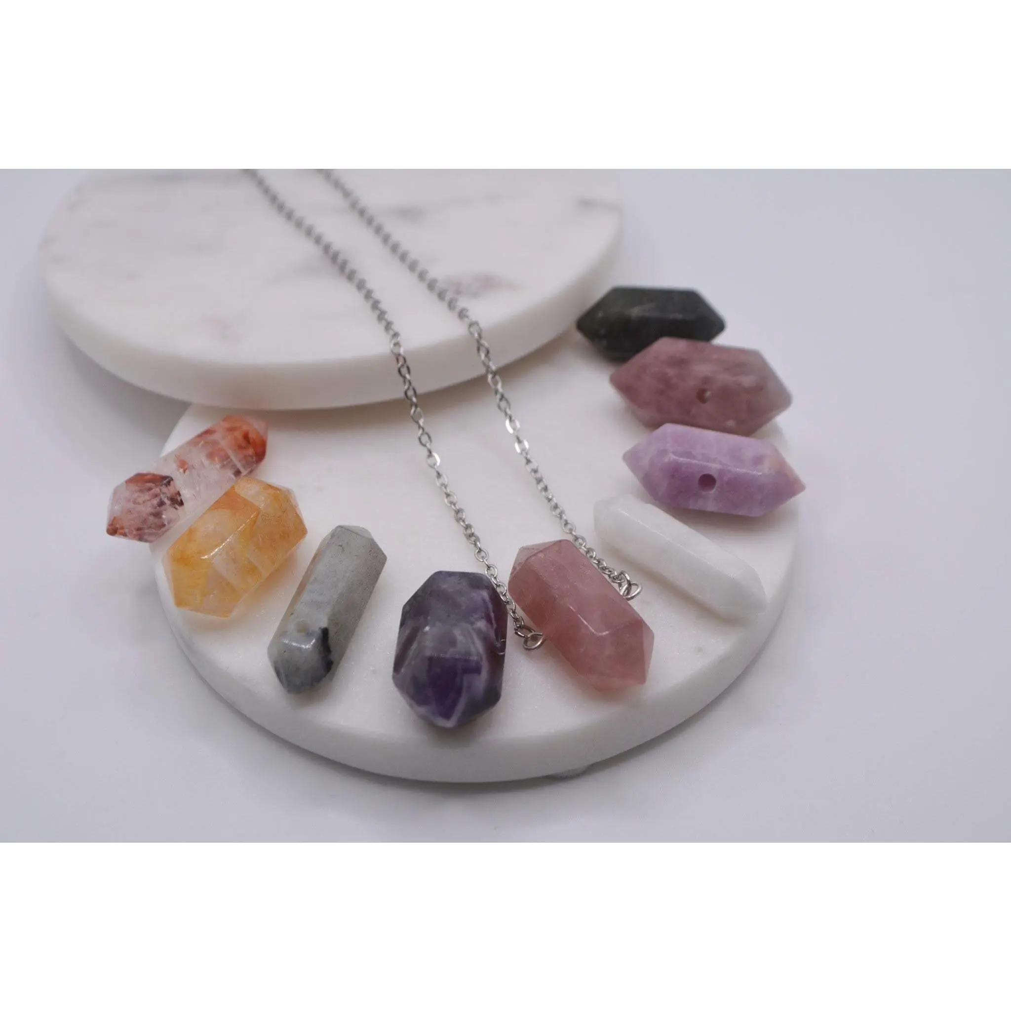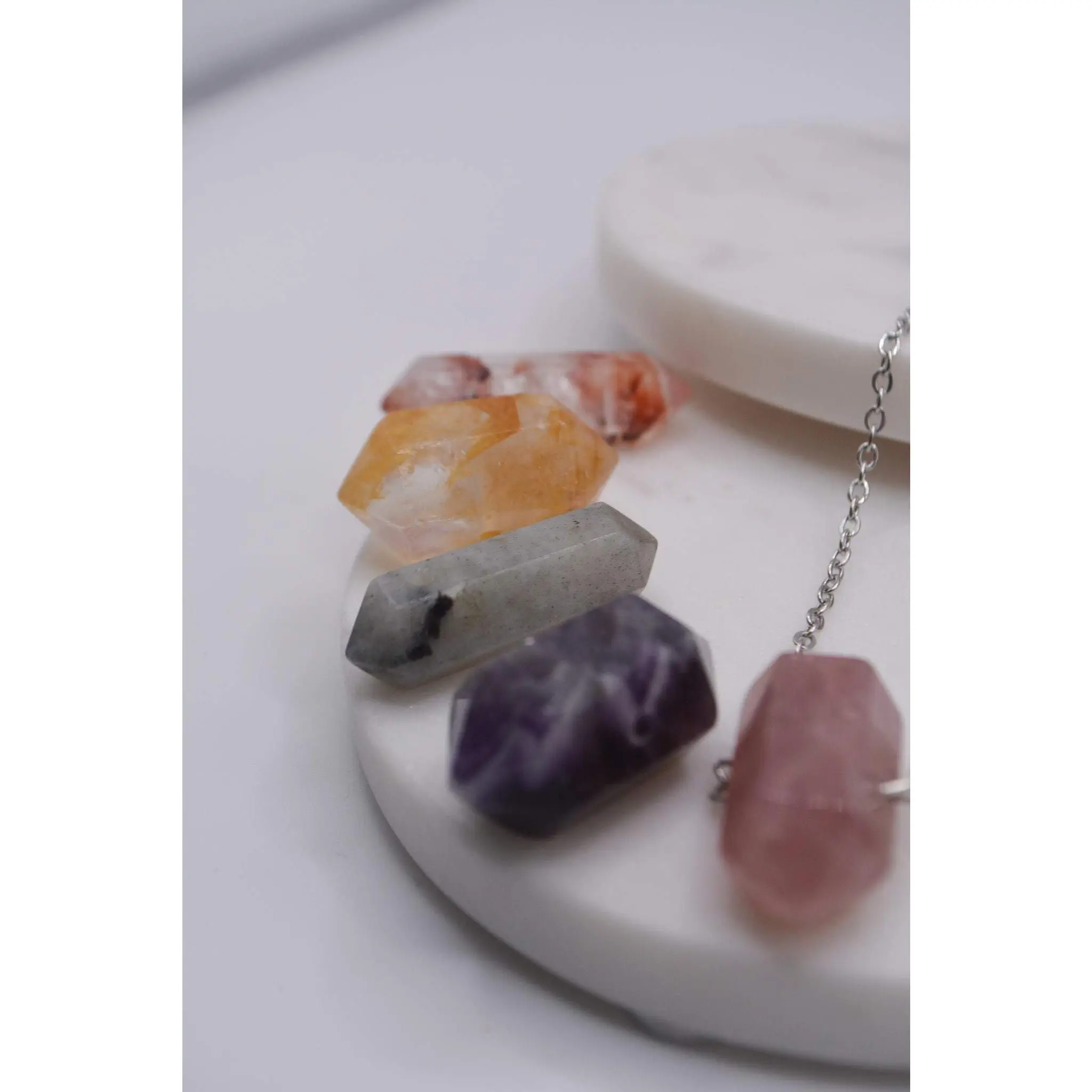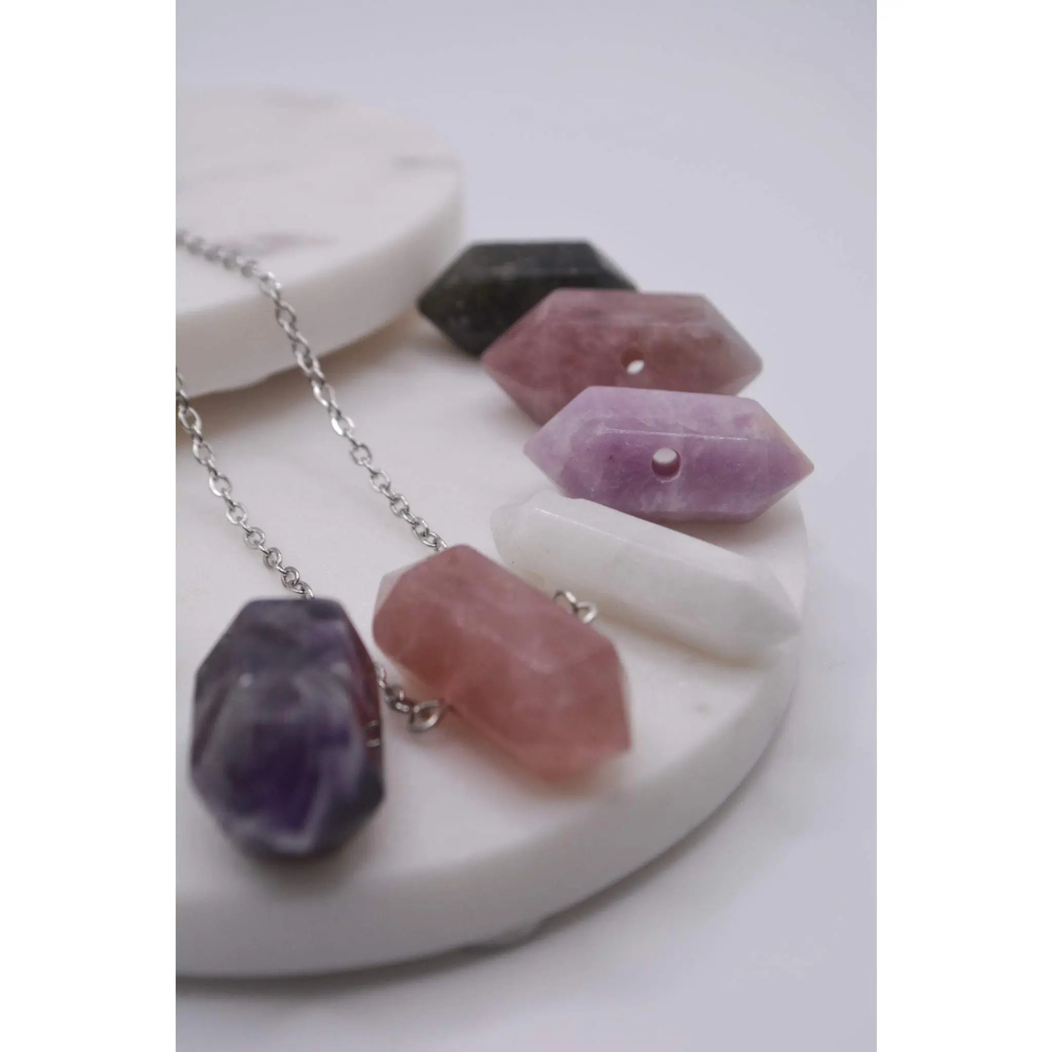 A striking authentic crystal, carved to perfection and laced with a sterling silver chain.