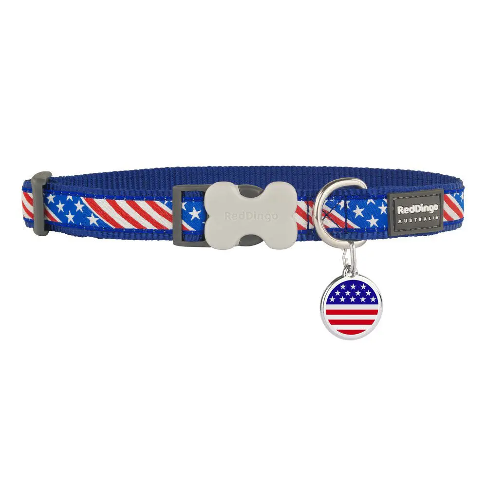 Keep your furry best friend safe with this Red Dingo collar and its eye-catching colors that will have him/her walking in style and staying secure. Made from premium nylon webbing with securely sewn seams, this soft and abrasion-resistant collar will provide your pup with the ultimate in long-lasting comfortable safety and style. Plus, the trademarked Bucklebone side-release clip and stainless-steel D-ring leash attachment ensure that you can get the collar on and off easily, while also making sure that your pup stays securely attached on your neighborhood strolls. Complement it with a Red Dingo Premium Pet ID for the perfect match!