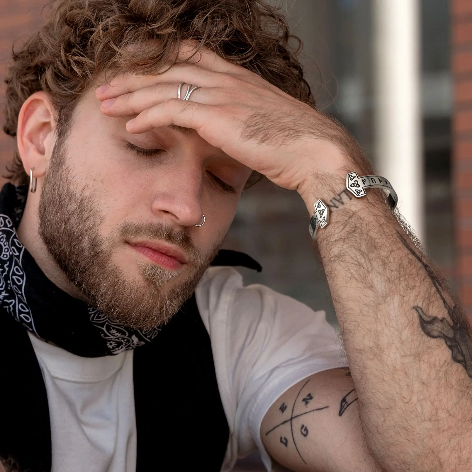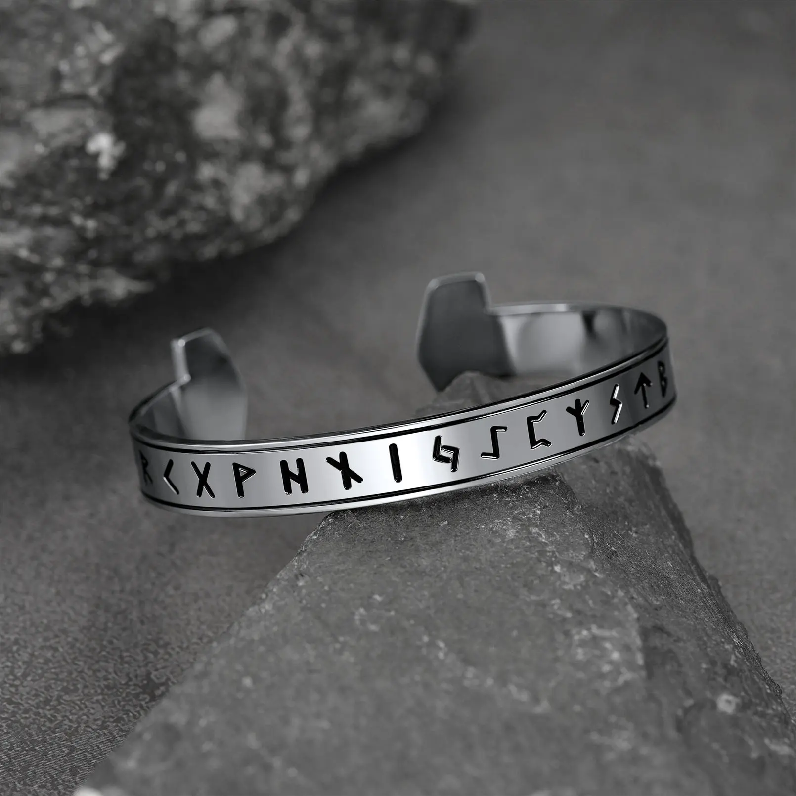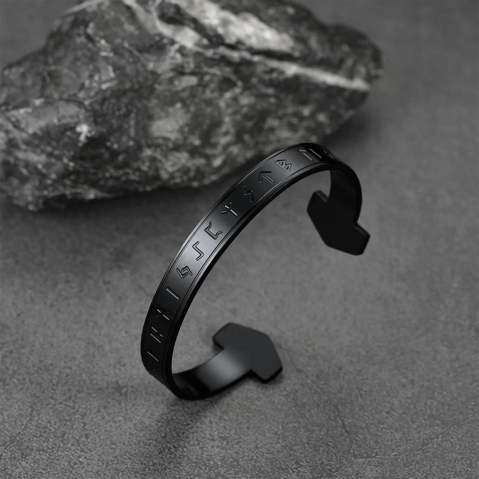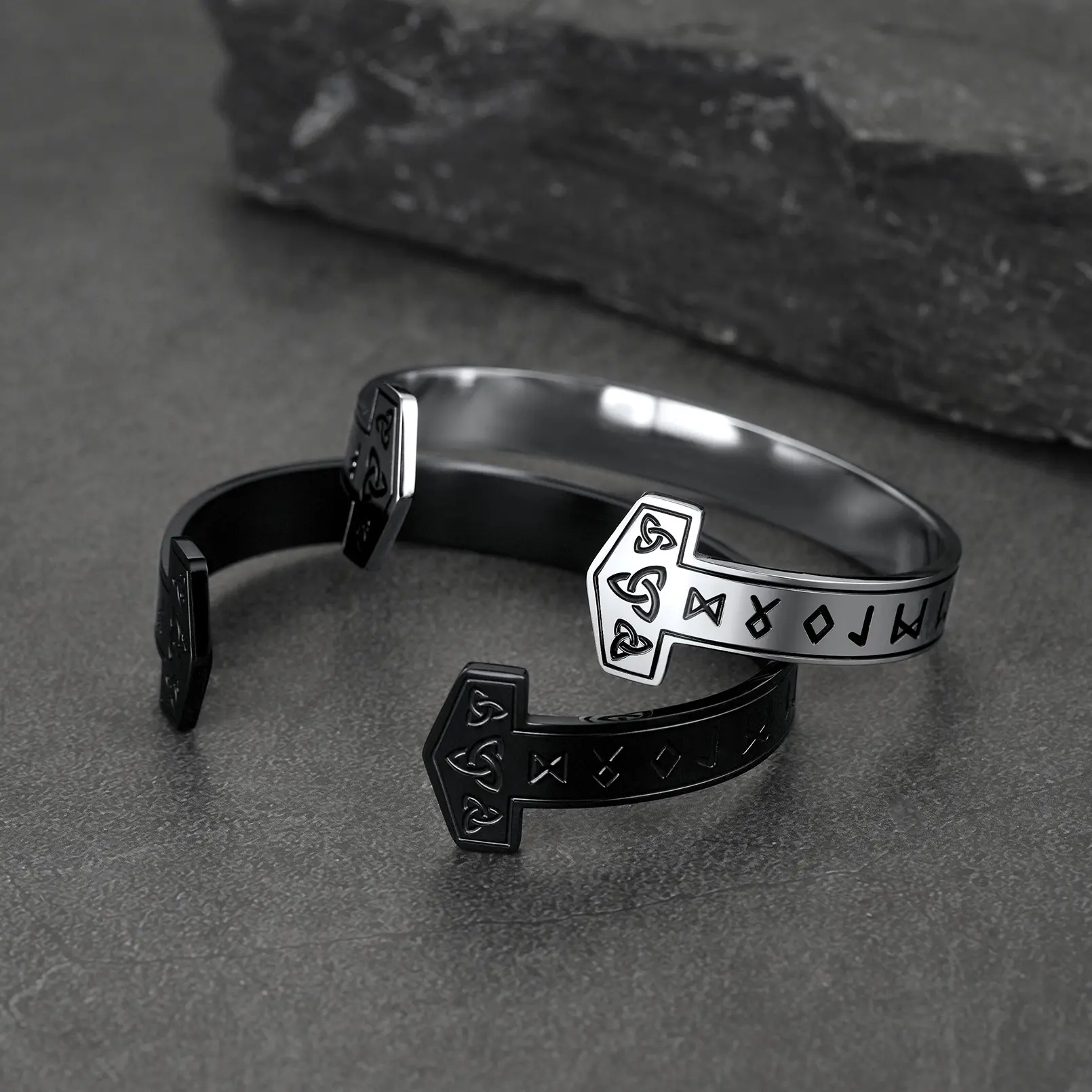 Vintage Norse Viking Runes Thor's Hammer open cuff bracelet for men, and amulet jewelry, give the wearer strength and protection. Made of stainless steel, sturdy and durable, hypoallergenic, and flexible enough with a gentle squeeze or slight spreading to adjust, it fits most wrist sizes. The perfect gift to give your loved ones.