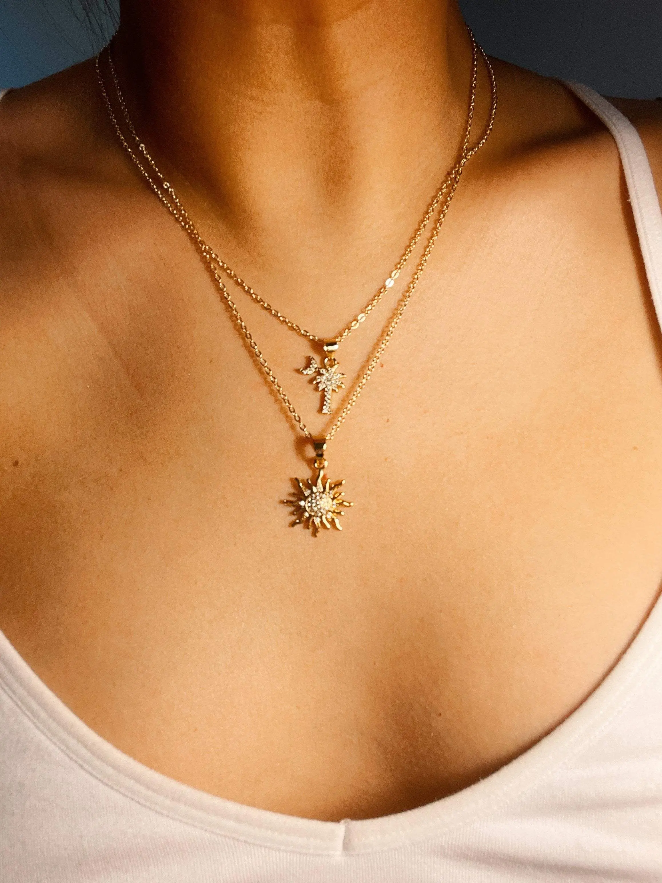 Made in ItalyMaterial:CHAIN: 24k gold filled / NO BRASSPENDANT: 24k gold plated pendant & cubic zirconia (waterproof) Chain Thickness: Approx 1.5mmClasp : Lobster ClaspLength : 18 inches Color : GoldChain Style : Cabe Chain