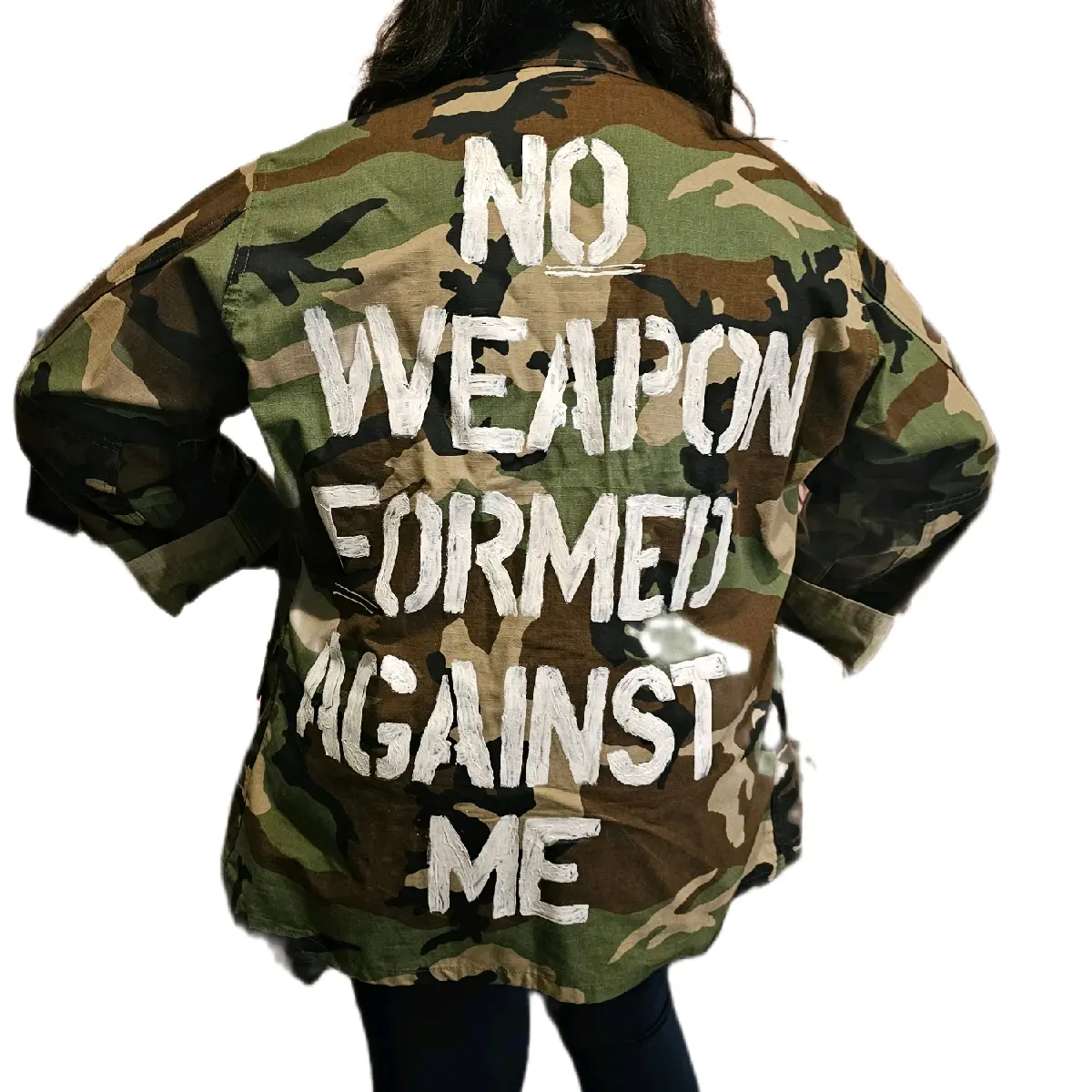 No Weapon Formed Against Me Army Fatigue Jacket Casual Stylish