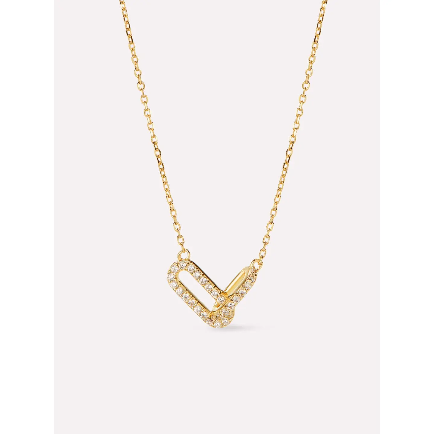 This timeless chain link necklace is sure to become a go-to jewelry staple when you want to add a touch of glam to your look. Crafted in recycled Sterling Silver and dipped in 14K gold, the centerpiece features two interconnected ovals dotted with pave-set cubic zirconia. This chain link necklace is an everyday piece you'll want to take from day to night. Pair them with the chain link earrings for the perfect sparkling look.