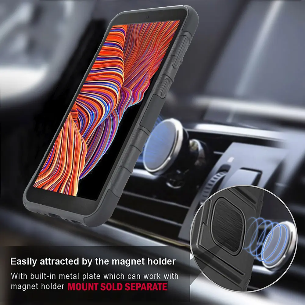 Case with Clip for Galaxy XCover 5, Nakedcellphone Black Rugged Cover [with Finger Grip Stand] + [Built-In Mounting Plate] + [Belt Hip Holster] for Samsung Galaxy XCover 5 Phone (SM-G525)