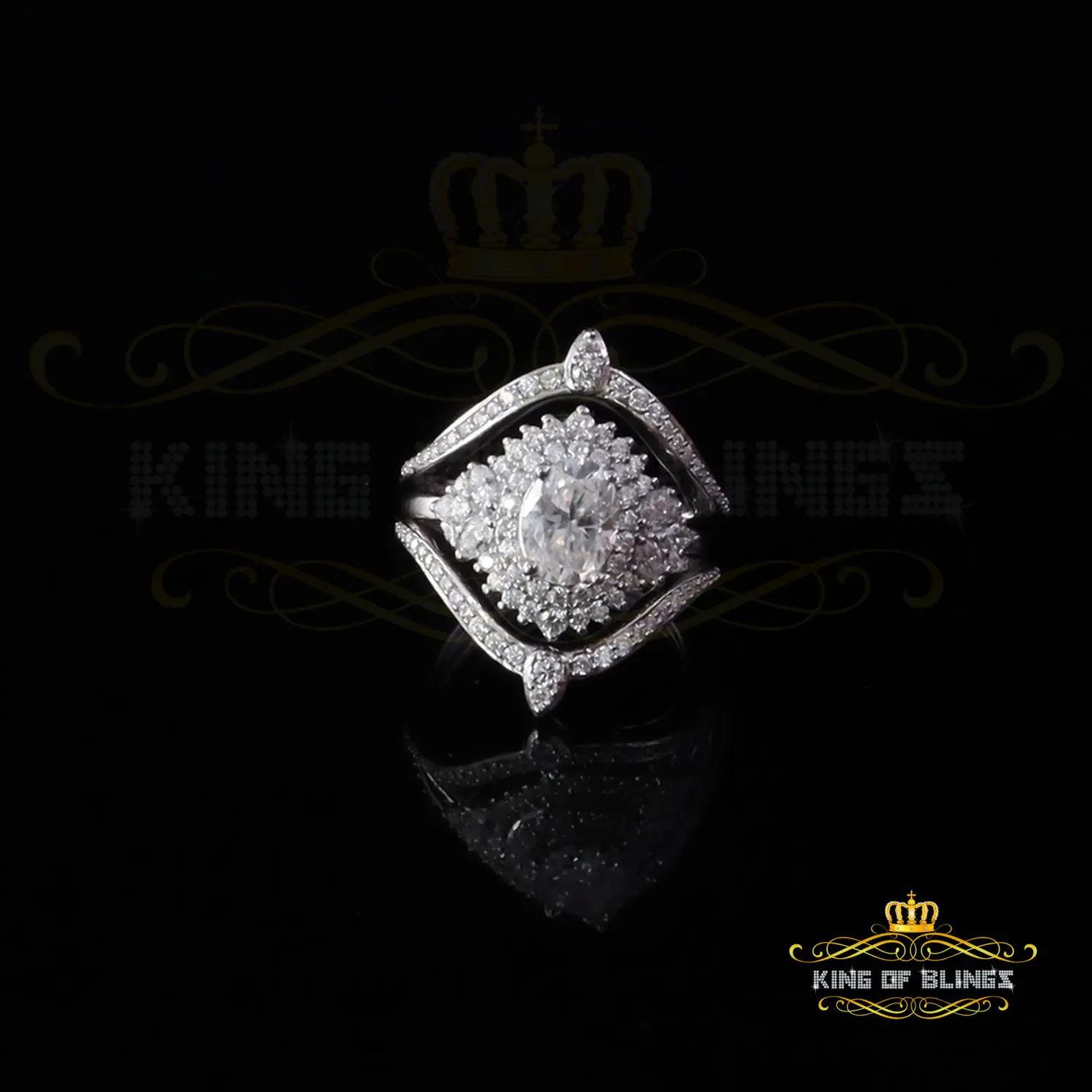 * Style : Bridal W/ Guard Oval Cut Rings Silver Moissanite Ladies Ring