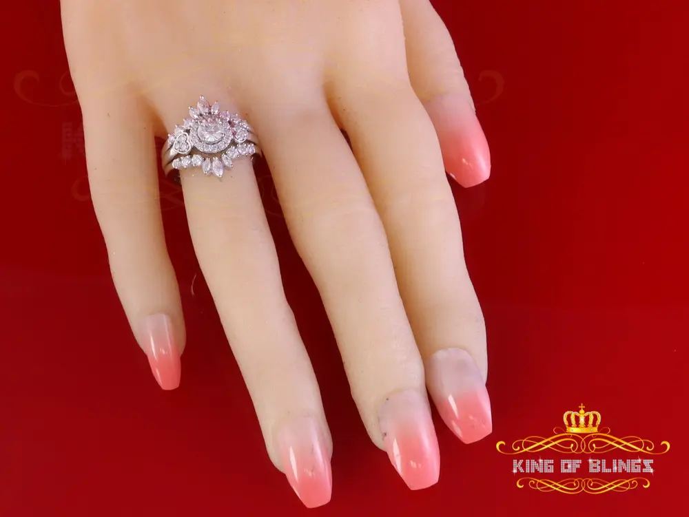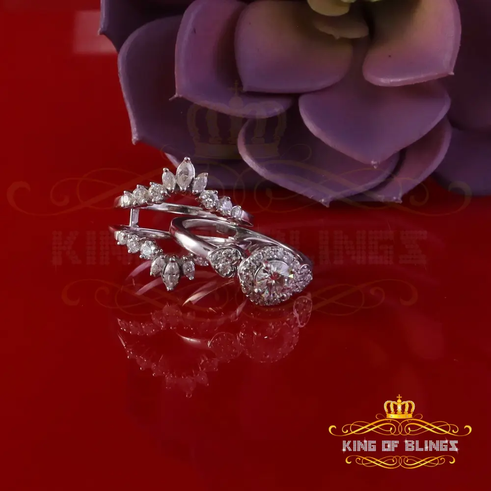 * Style : Bridal W/ Guard Round Brillant Cut Rings Silver Moissanite Ladies Ring