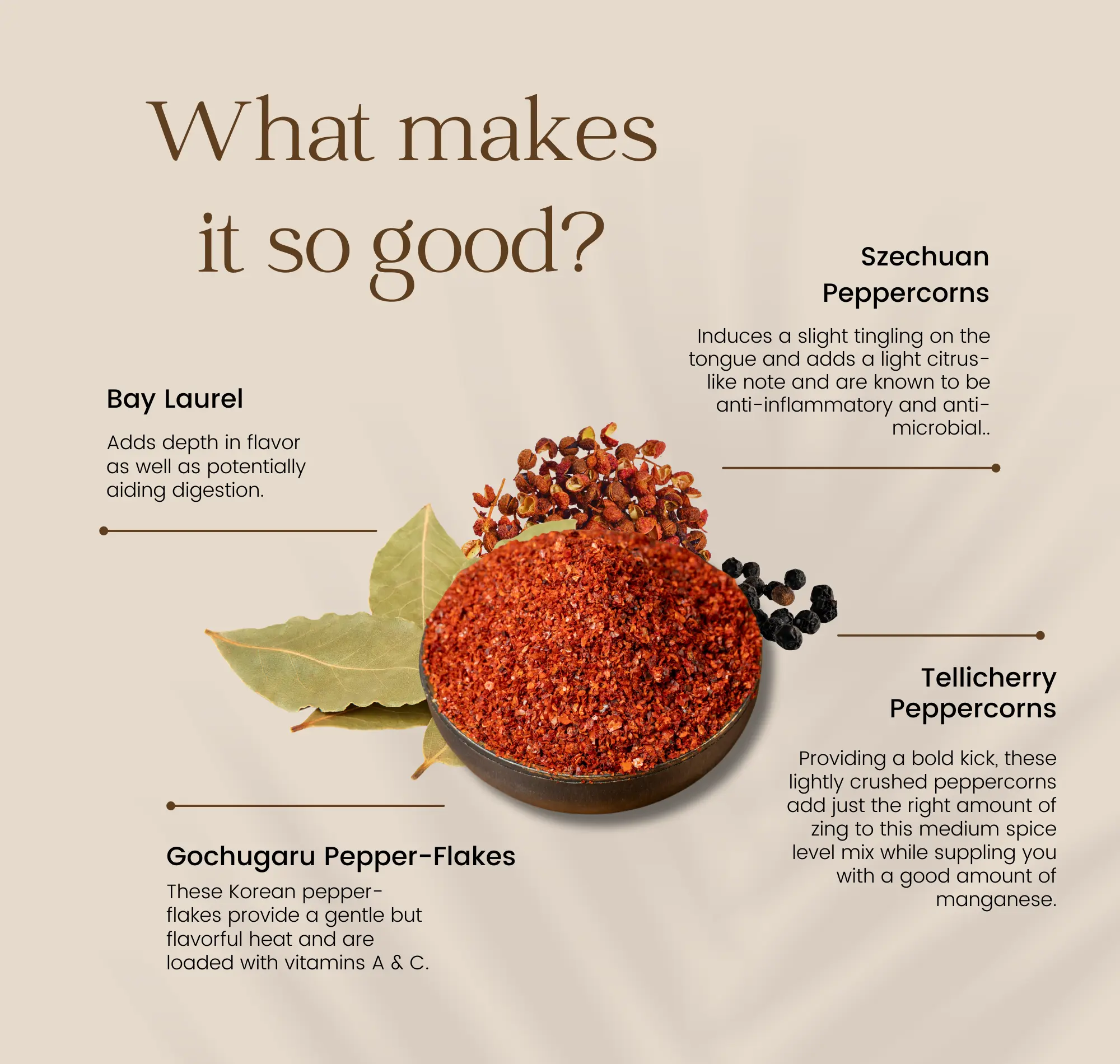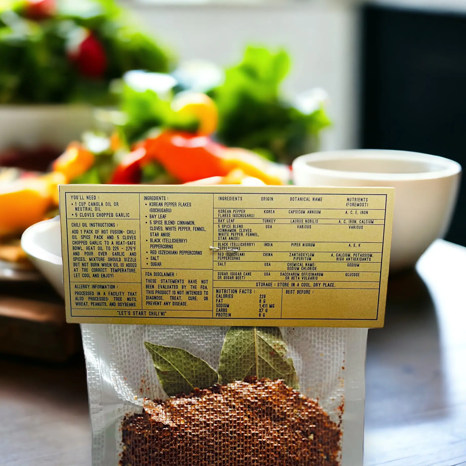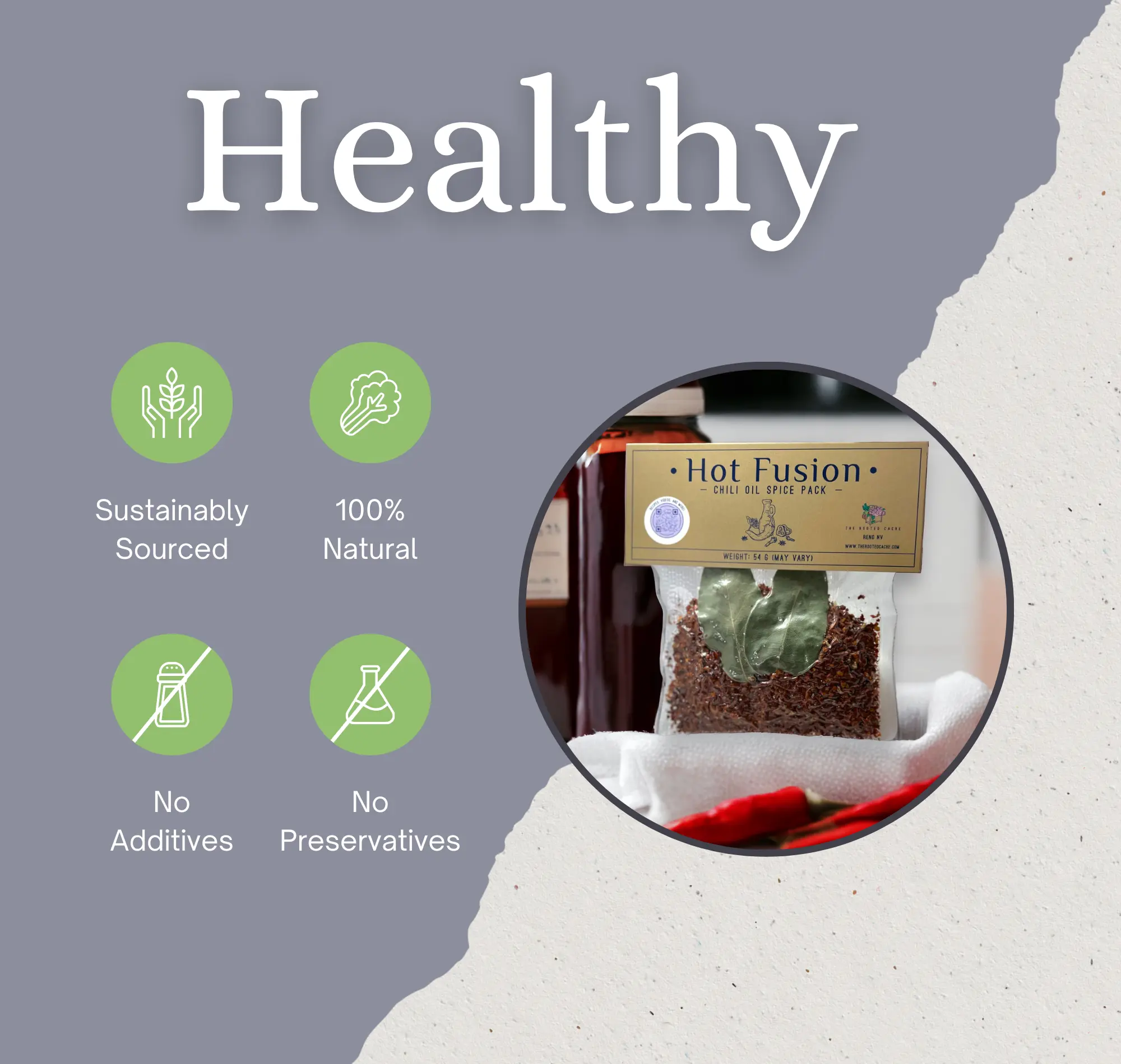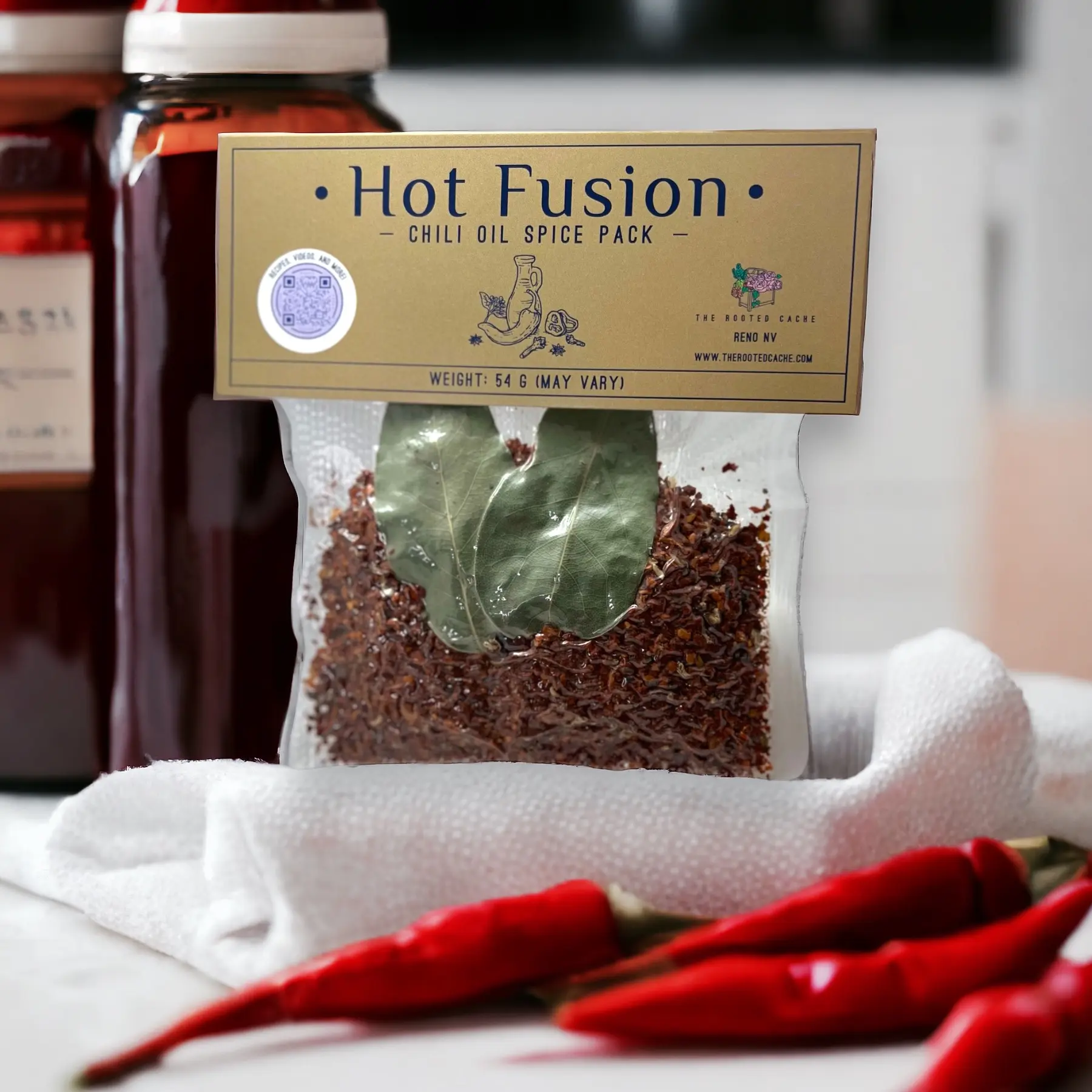 Experience a flavor explosion with our Hot Fusion Chili Oil Spice Packs, designed for foodies and spice enthusiasts alike. Infused with the perfect balance of heat and flavor, each pack delivers the fiery punch of Gochugaru pepper flakes, Tellicherry peppercorns, and a five-spice blend that will easily elevate any dish to new heights. Whether you're a fan of spicy cuisine or simply love adding a kick to your meals, our chili oil spice packs offer the perfect amount of spice to tantalize your taste buds and awaken your senses.