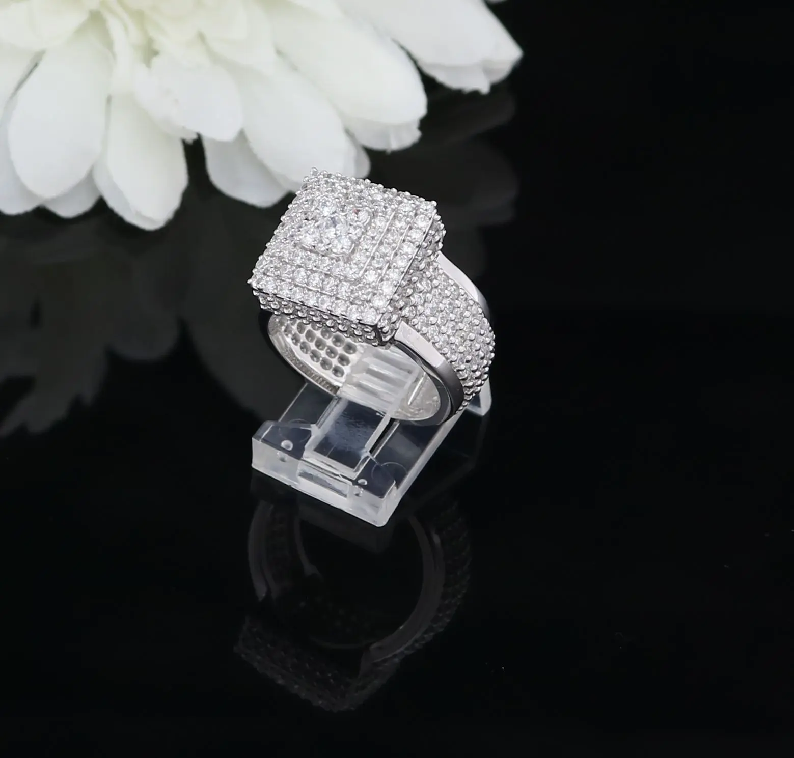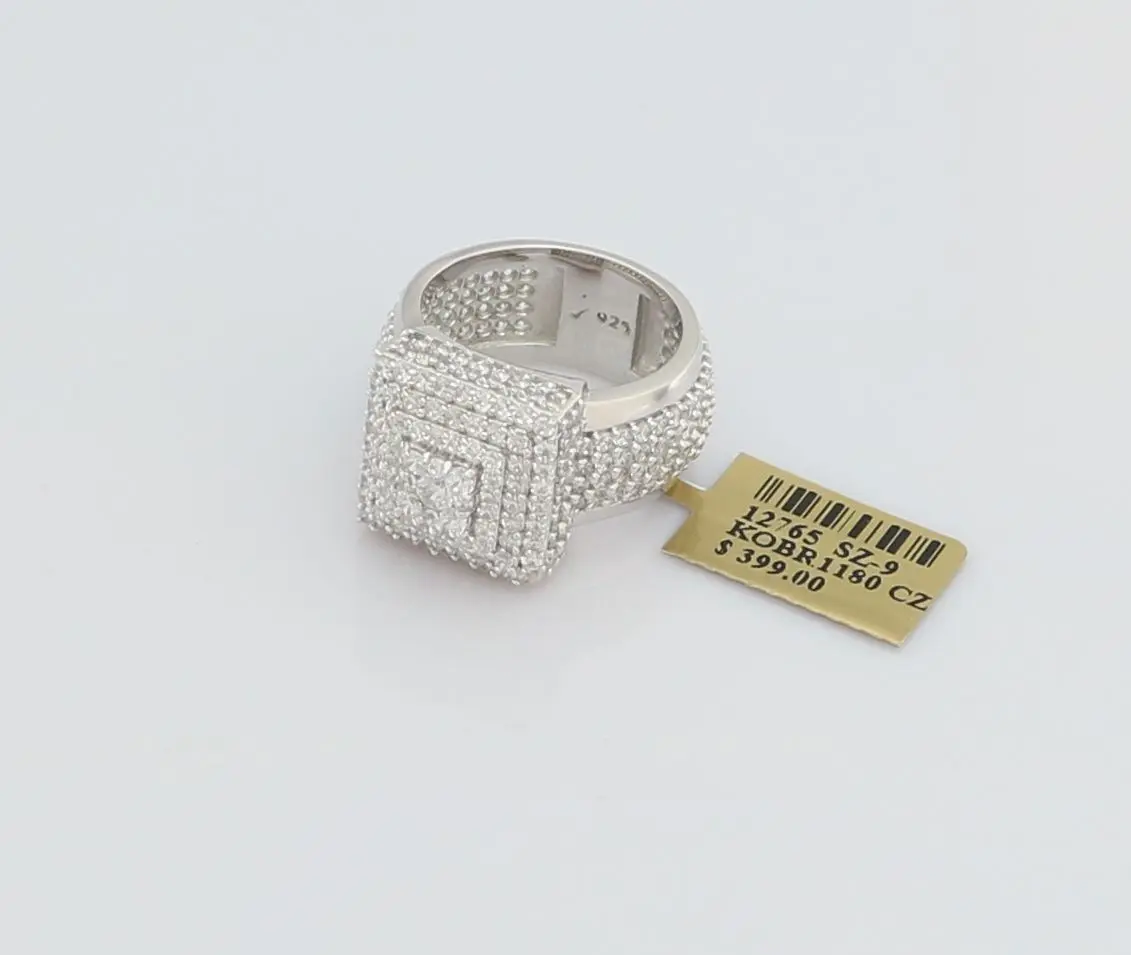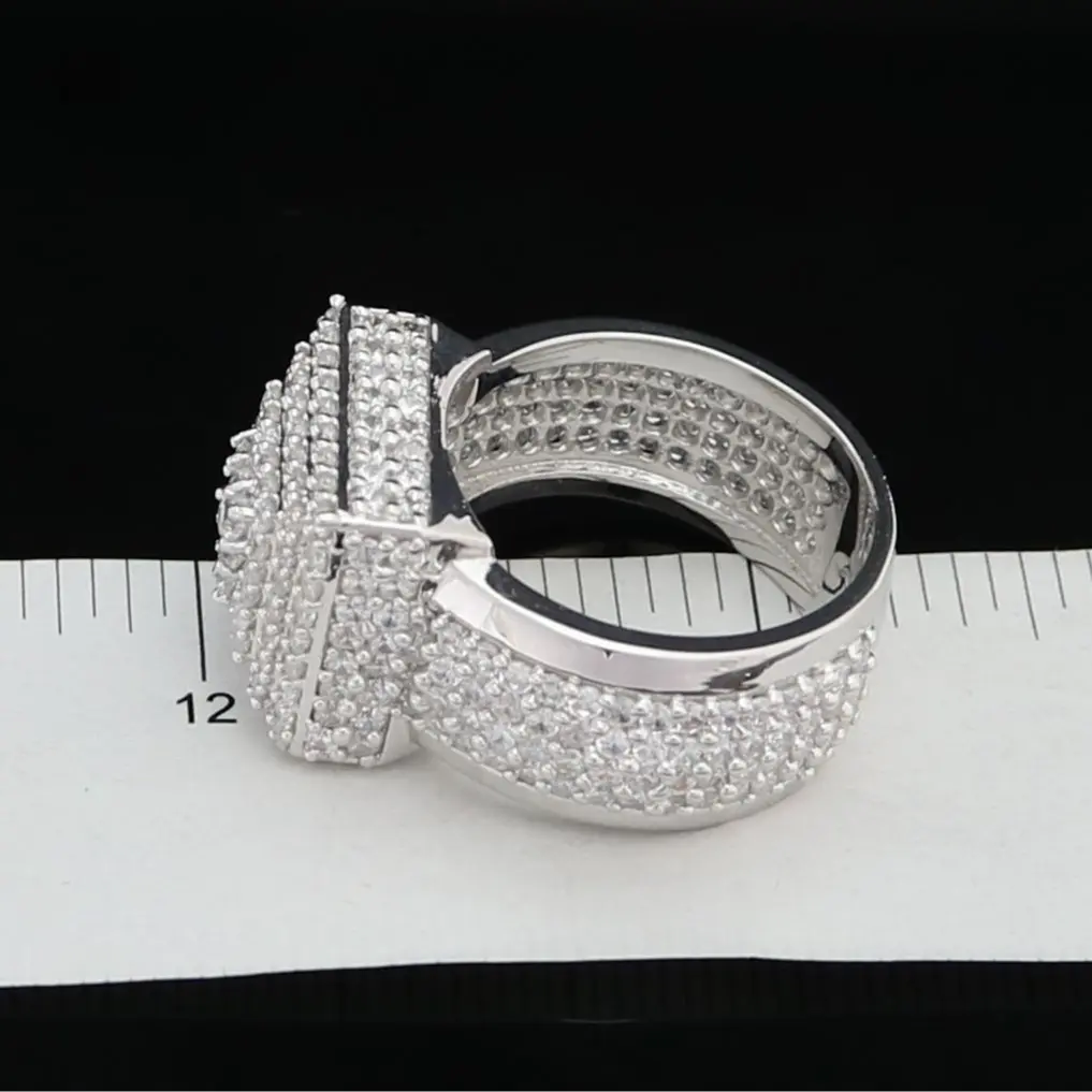 King Of Bling's 925 Silver White 8.50ct Cubic Zirconia Wide Square Fancy Unisex Ring Size 8