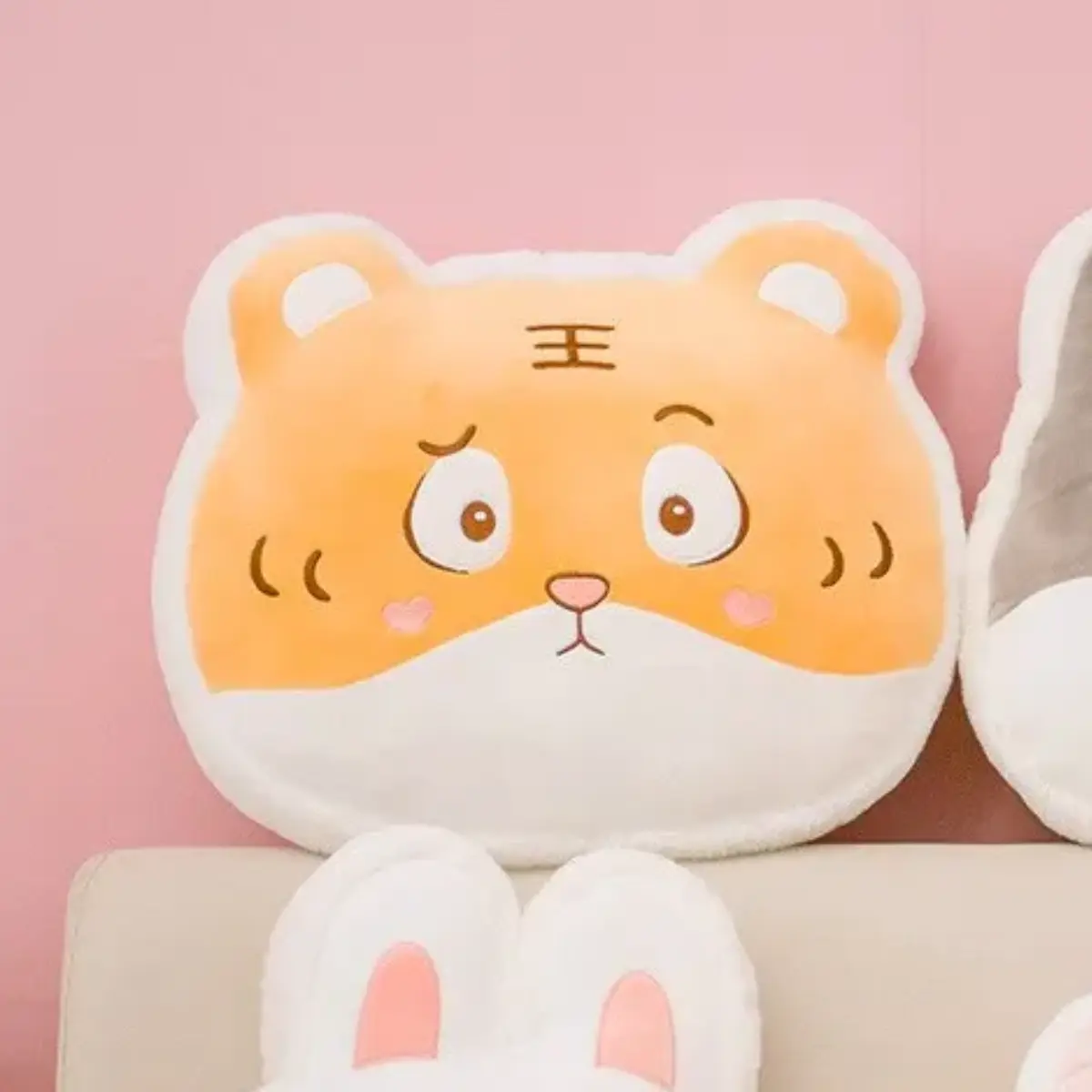 the perfect addition to any cozy corner or playful bedroom. Each pillow, sold separately, features a different charming animal face, from a bashful tiger to a serene rabbit, a gentle bear, and a sweet pig, all ready to bring a smile to your face and comfort to your space.