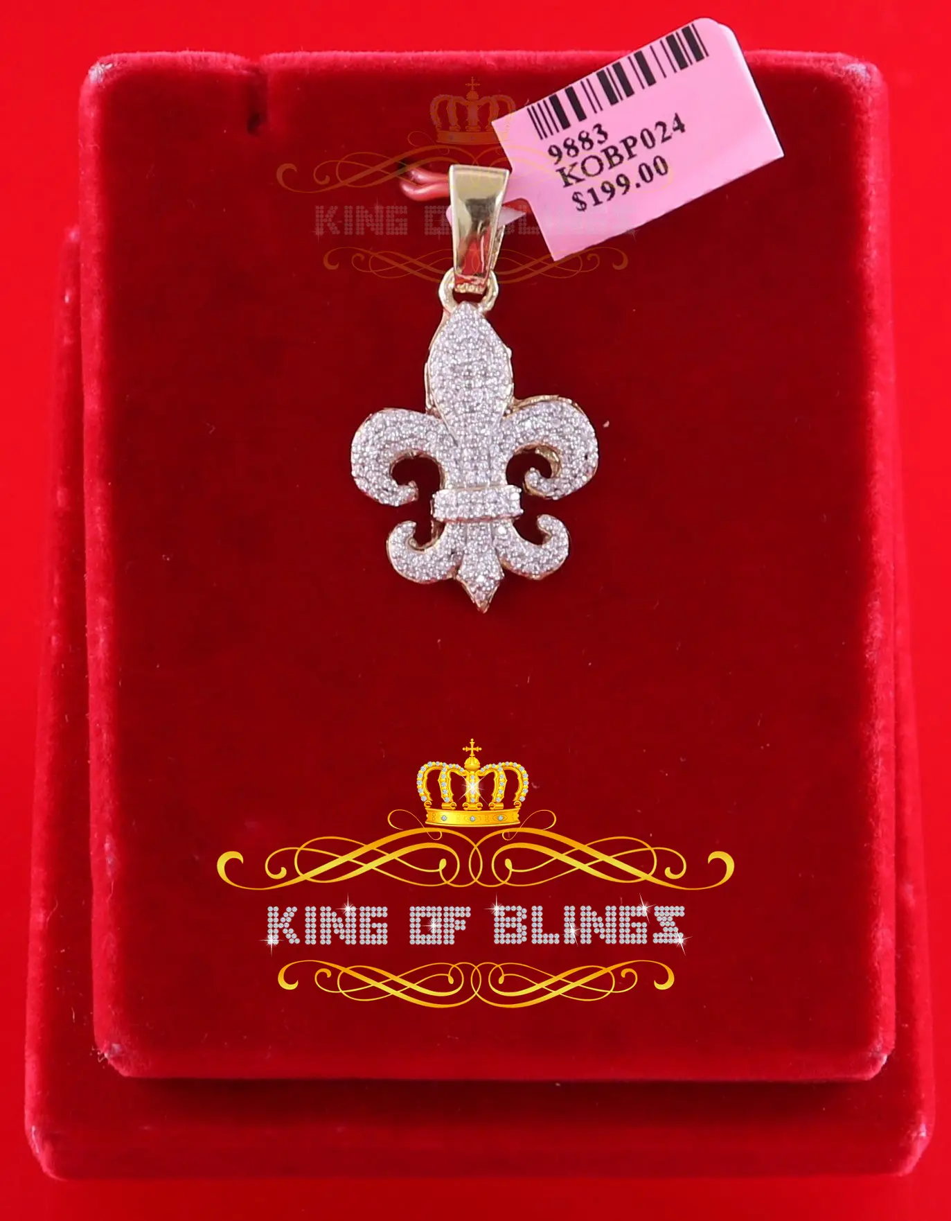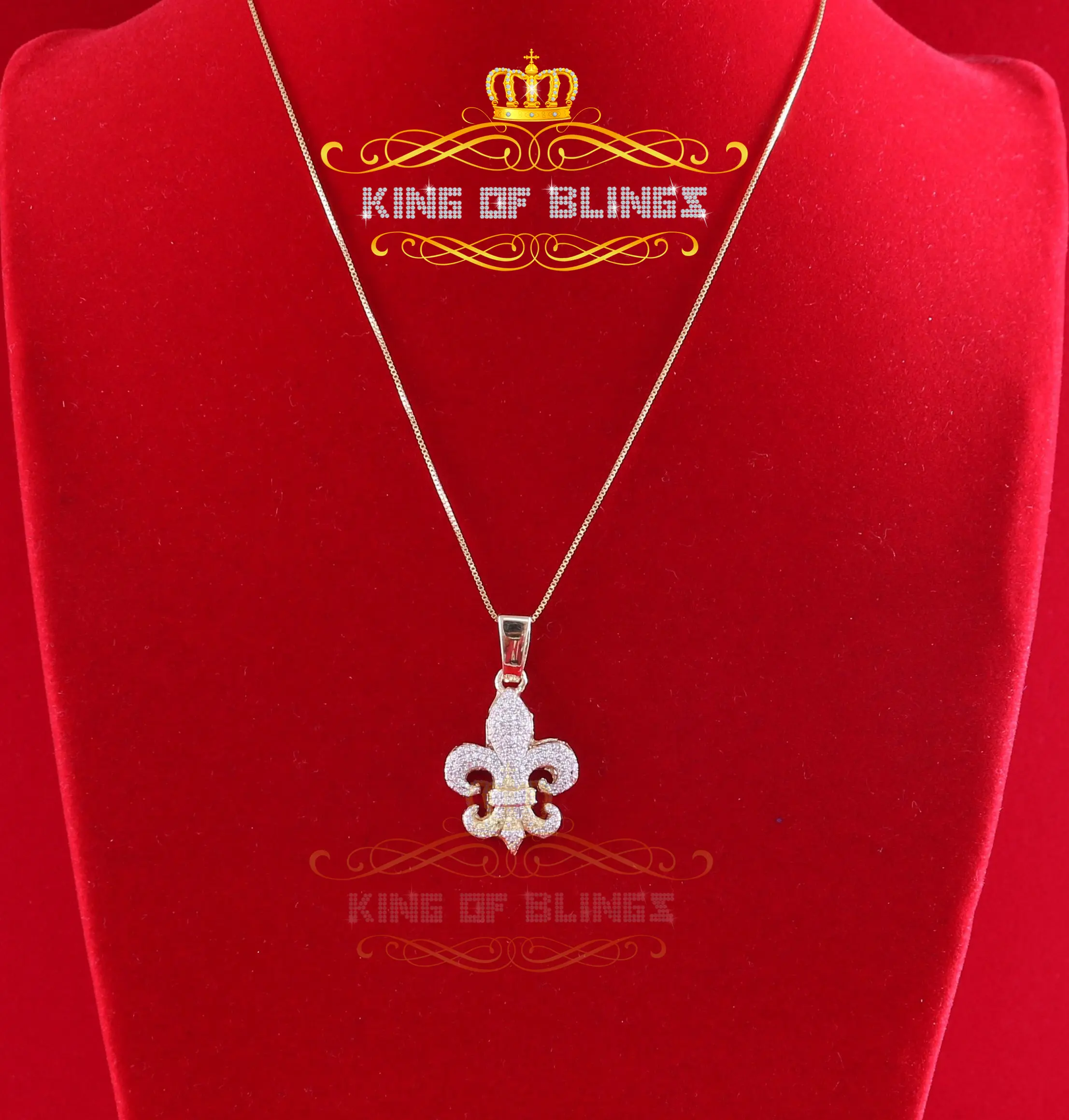 This new is a stylish unisex piece made of 925 sterling silver with a yellow metal color. It features a 1.47ct AAA cubic zircon April birthstone, giving it a good shiny appearance similar to a real diamond. The Fleur de Lis pendant weighs 2.88 gm and is designed for both women and men, making it suitable for all genders.