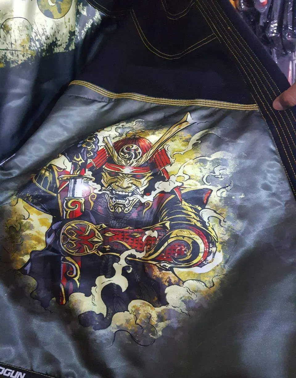 The Shogun Samurai Special Edition Brazilian Jiu Jitsu is made from 450g pearl weave cotton and features a dye-sublimated liner inside of the kimono jacket. Custom full color samurai illustration makes this a work of art. The samurai's face is on the inside of the lapel to make it easy to show off while wearing the jacket.