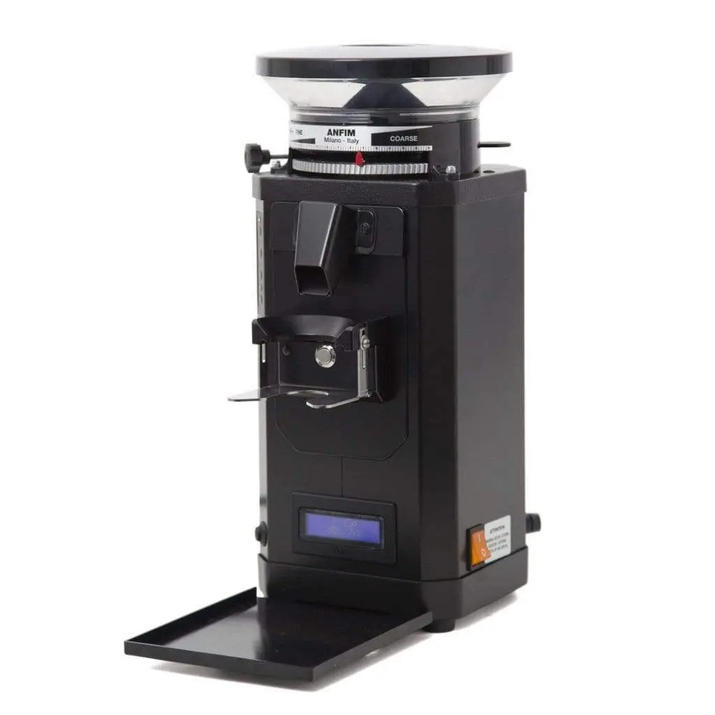 The CODY II On-Demand Coffee Grinder features 64 mm flat hardened steel burrs, two programmable timed settings with 0.1 s precision, a manual pulsed grinding button, and excellent grind quality for the tastiest espresso. As with the previous Caimano platform, the CODY II features stepless gear adjustment for precise tuning of your grind, and a convenient short 1 lb shut-off hopper up top. The adjustable portafilter forks are easy to set up, and the portafilter button for timed dosing is interruptible, meaning you can grind a bit, groom, then go back to finish up your dose. This is an extremely barista-friendly grinder, with easy-to-use features and great quality in the cup - and the compact size and short hopper also make it an excellent home espresso grinder.