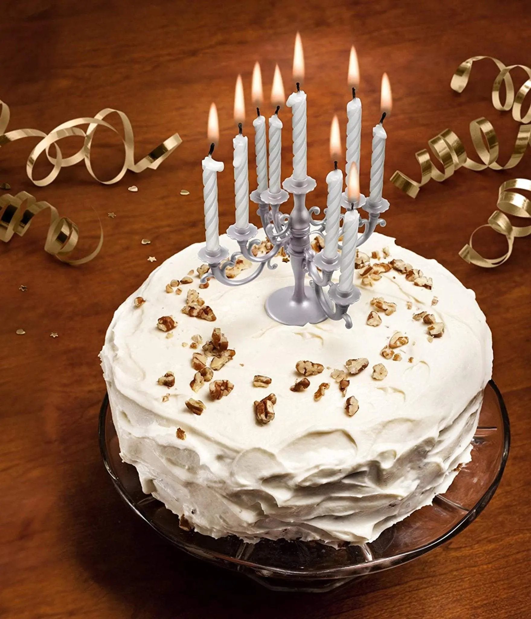 Celebrate another year of life in style with this silver cake candelabra. Complete with 9 candles.Available while supplies last.