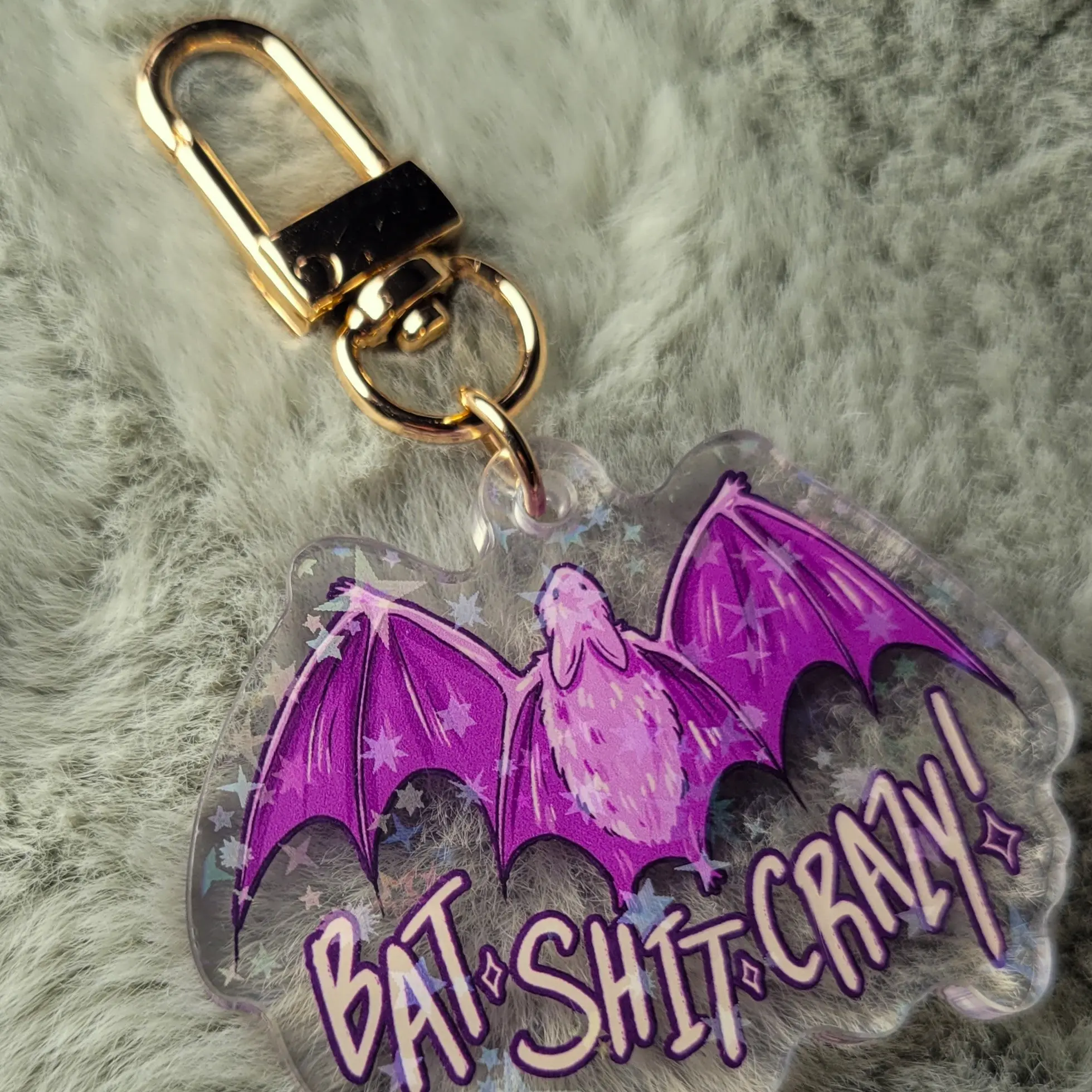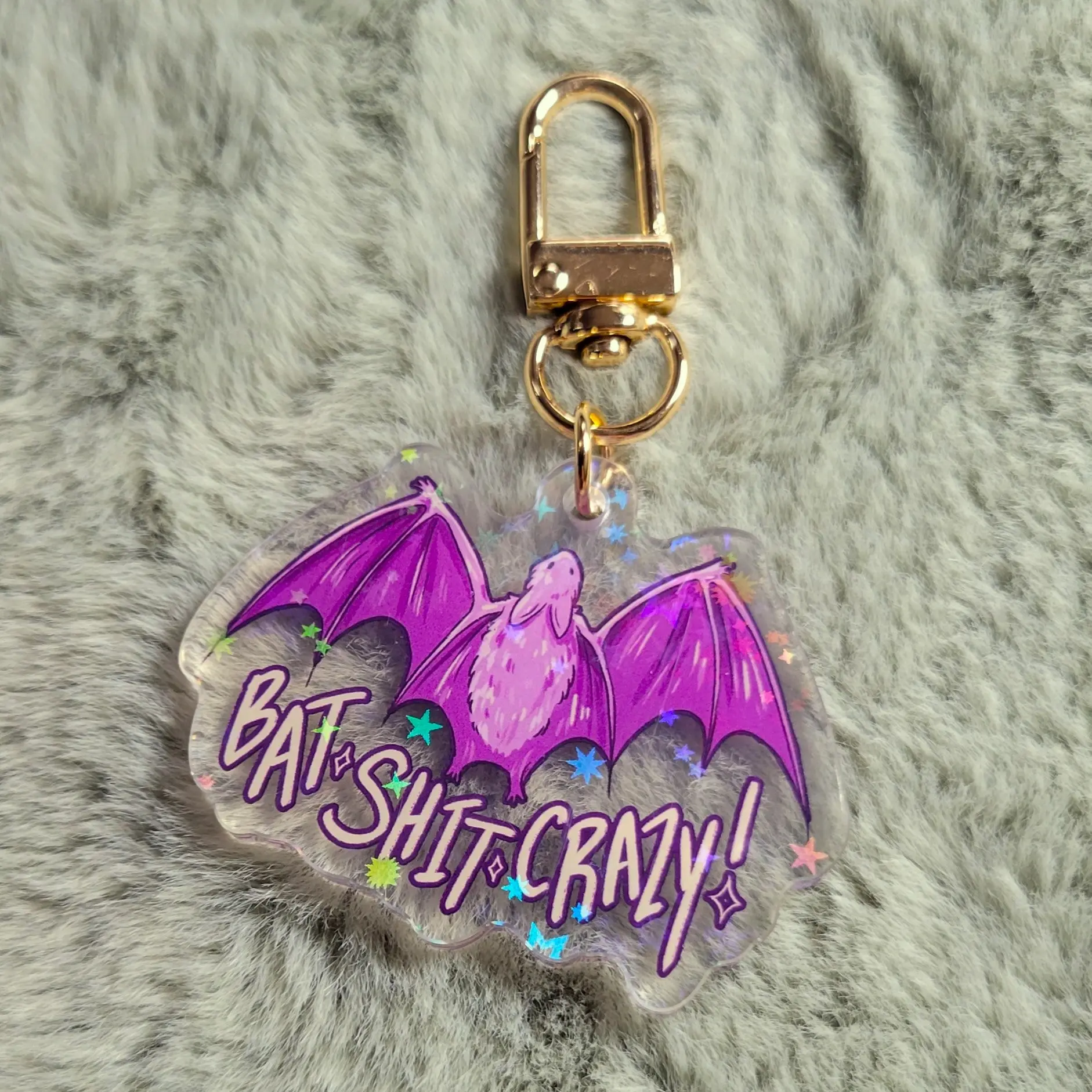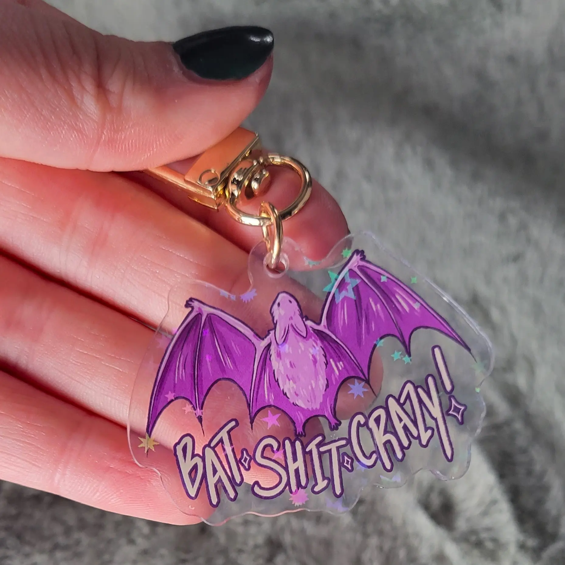 - Transparent, holographic acrylic keychain with lobster clasp