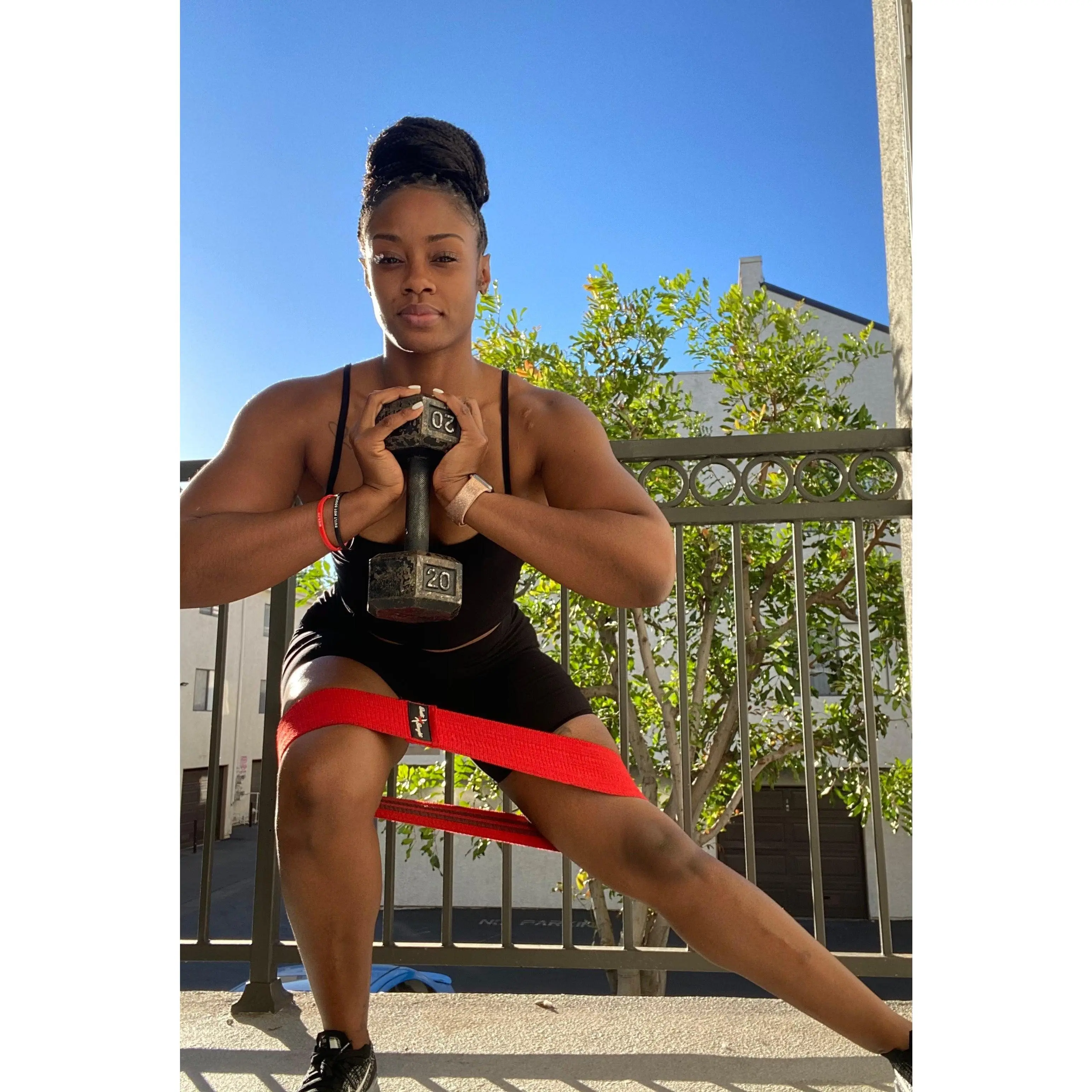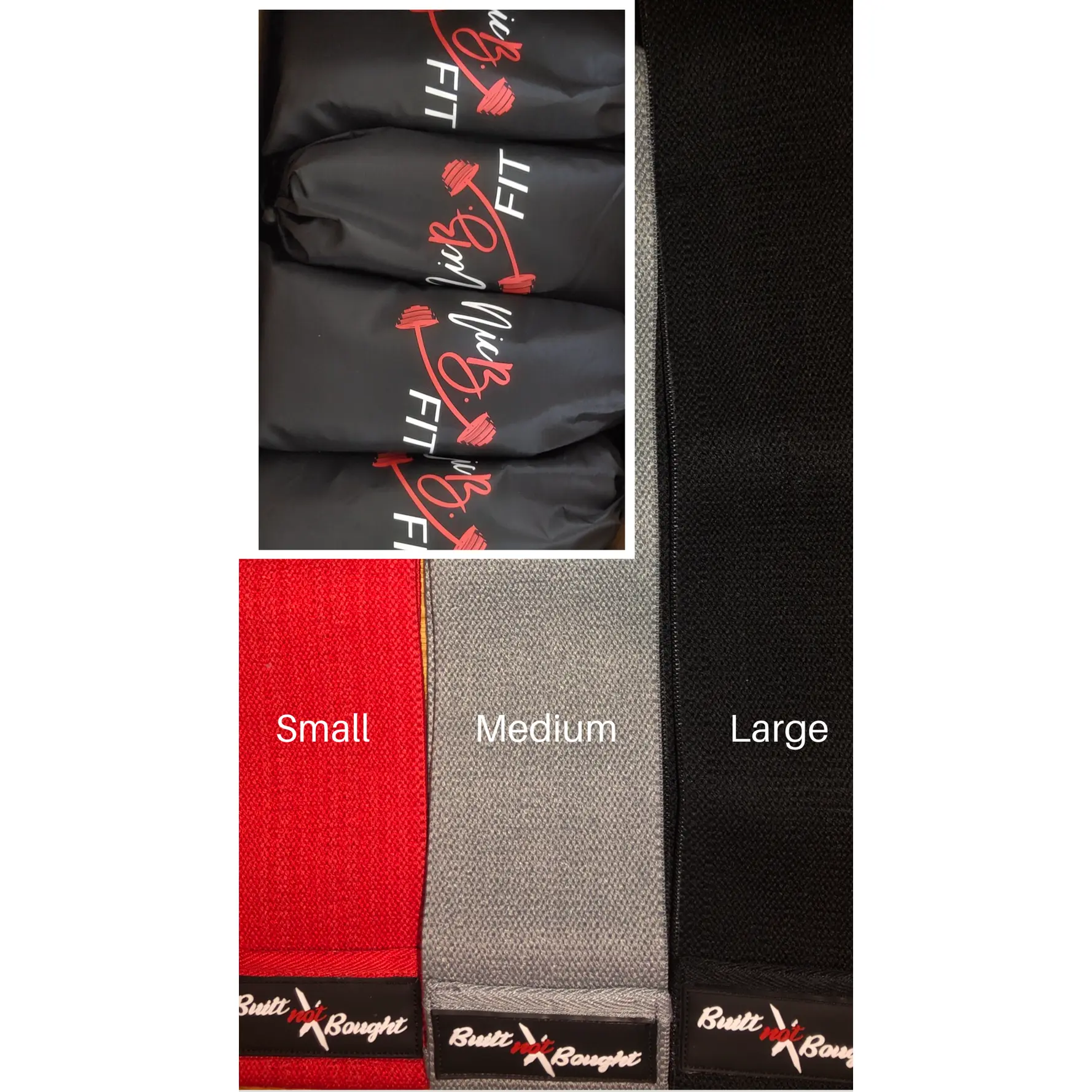 These bands come 3 in a pack with a stylish carrying bag Red is small, gray is medium and black is large. The sizes refer the the circumference of the band. With the smaller bands, you can place around your thighs or ankles and do squats or sidesteps, etc. With the medium band, you can do lunges with the band above your knees and other dynamic movements that target the glutes. Try doing movements with the medium band above your knees and the small band right above your ankles, thank me later. With the large band, you can keep resistance with wider leg movements while squatting or on the leg press. No, these bands don’t roll, just in case you were wondering 😉