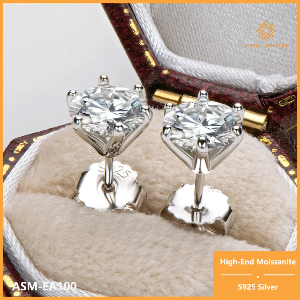 [ASM-EA121] s925 sterling silver snow moissanite diamond earrings simple moissanite stone earrings moissanite jewelry earrings