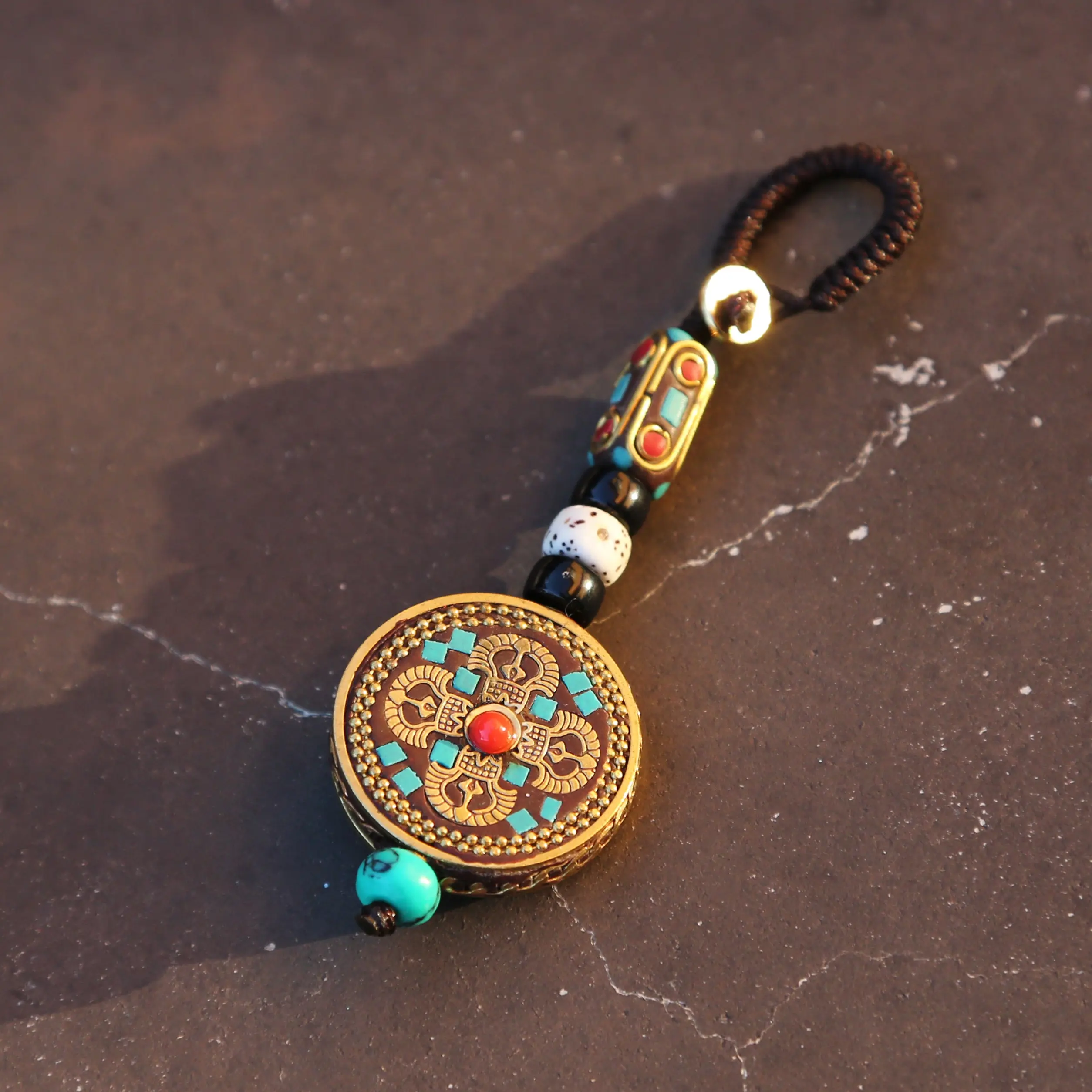 ·Spiritual Symbolism: Features a Vajra decoration on a leather tag, embodying protection and positive energy rooted in Buddhist tradition.