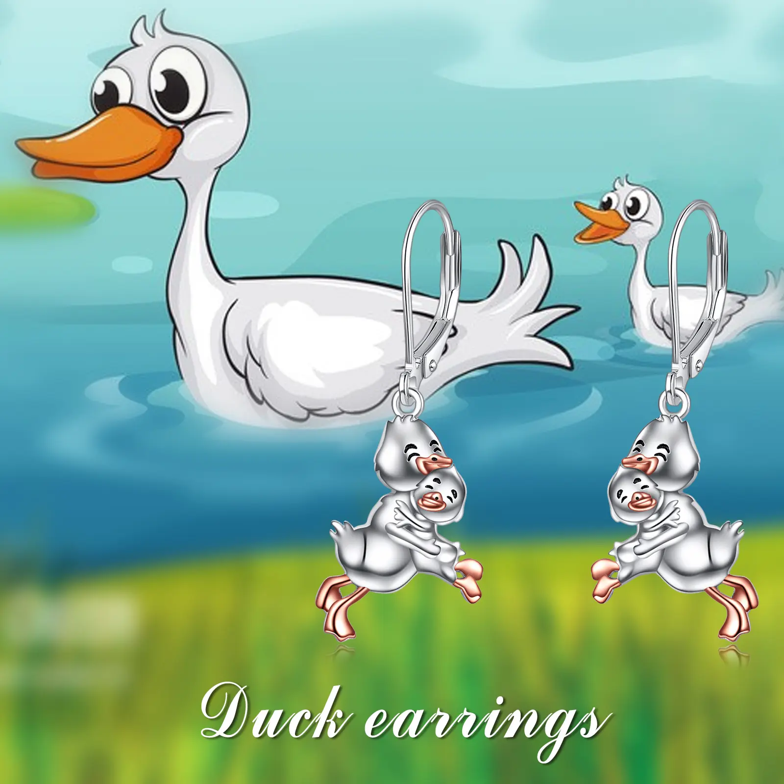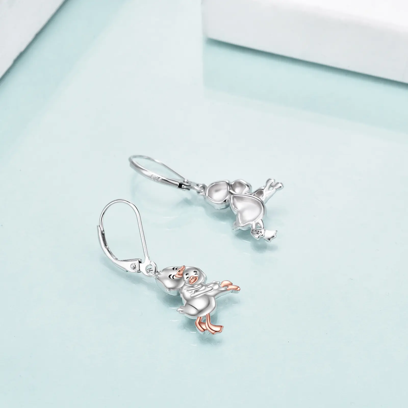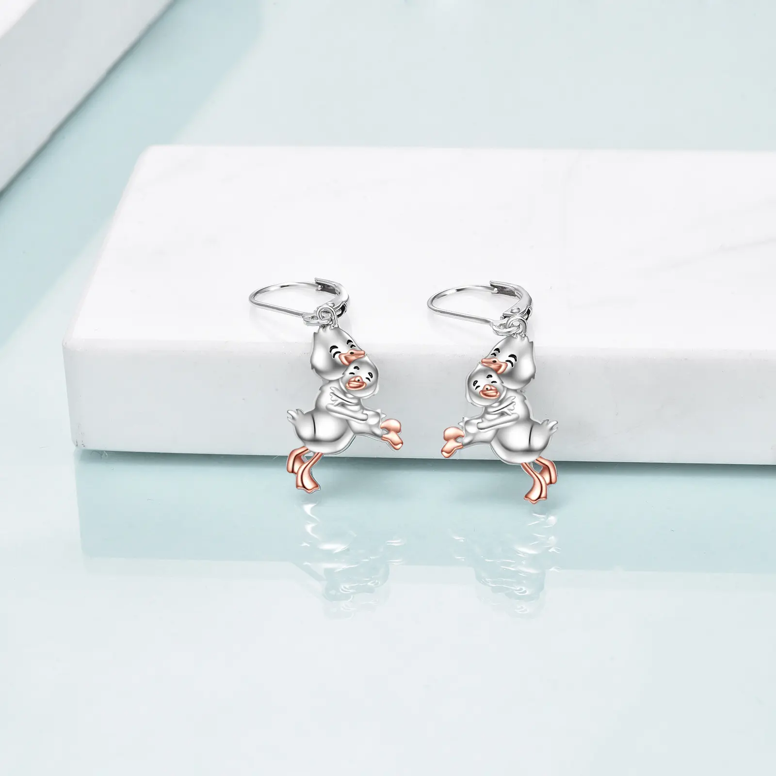 Duck Earrings Sterling Silver Mother Daughter Duck Dangle Earrings