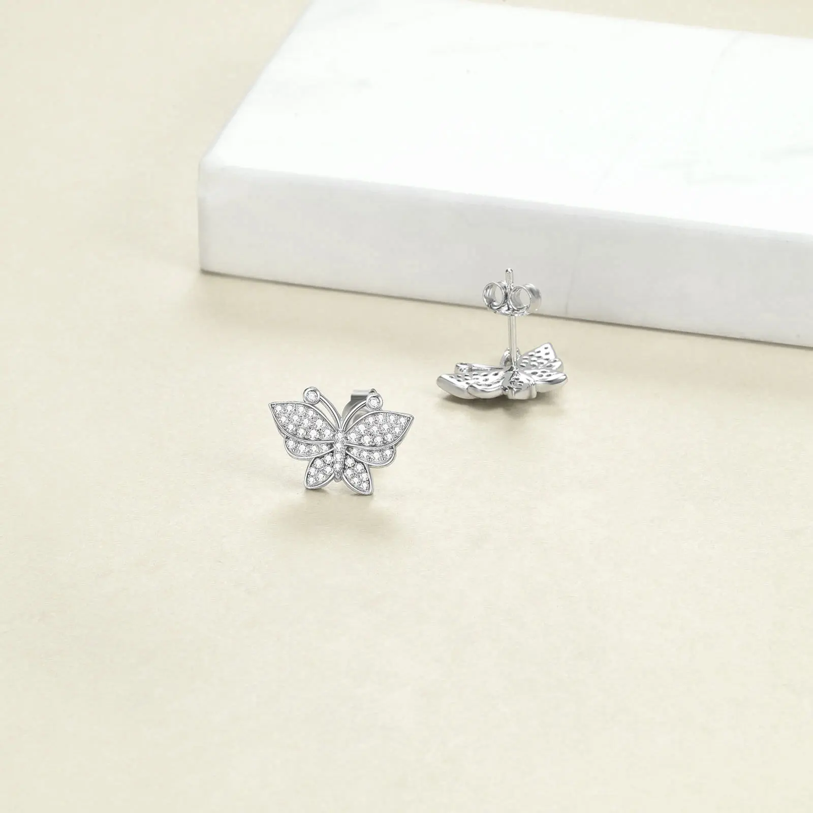 Butterfly Earrings Sterling Silver Micro Pave Butterfly Studs