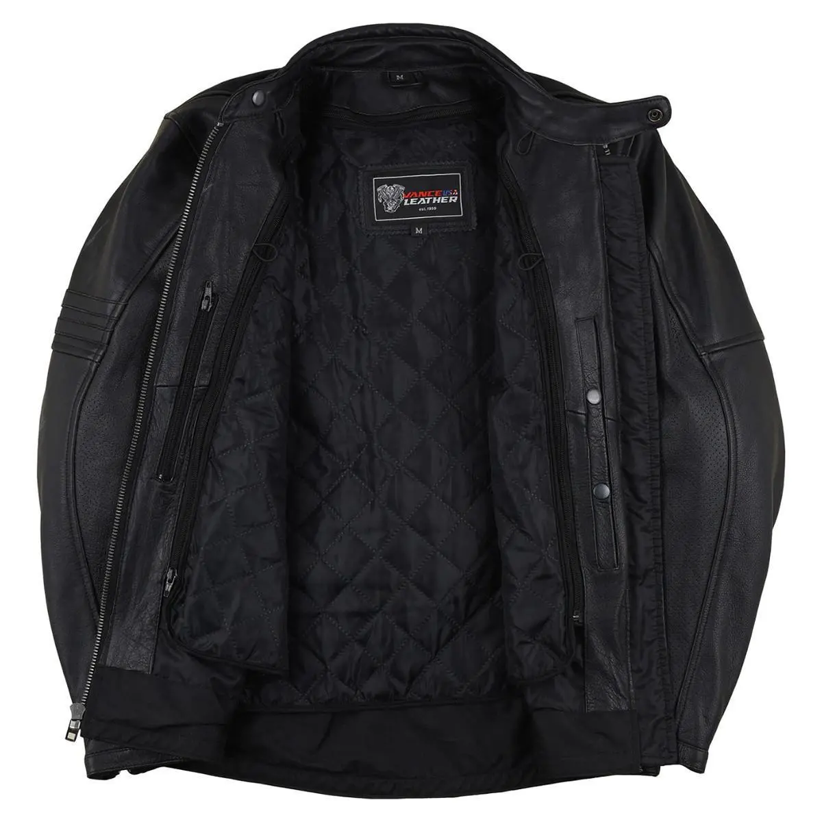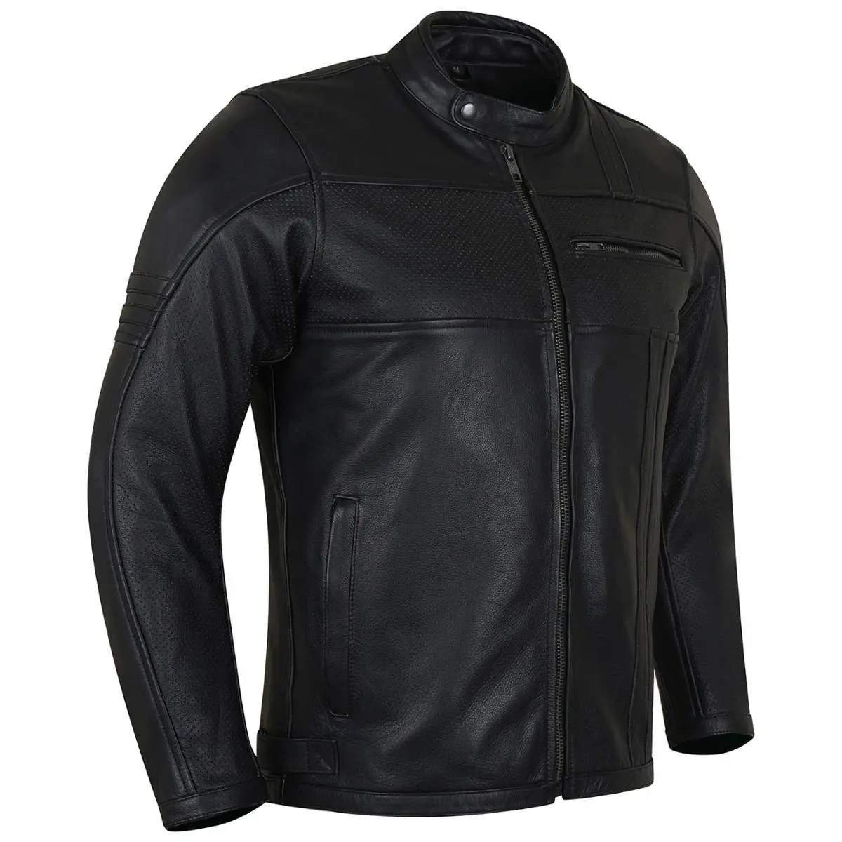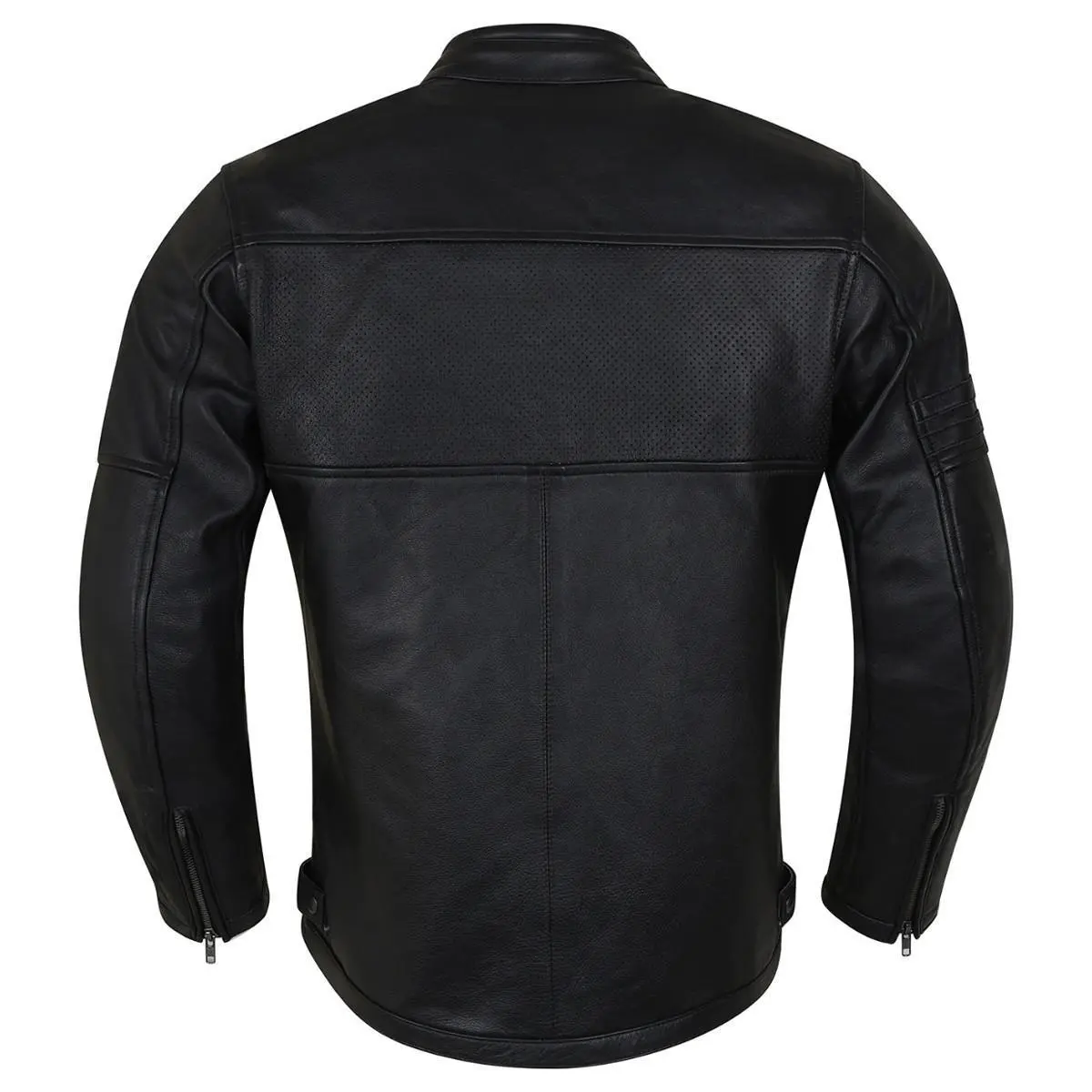 High Mileage Mens Premium Commuter Cafe Racer Motorcycle Leather Jacket with Removeable CE Armor.