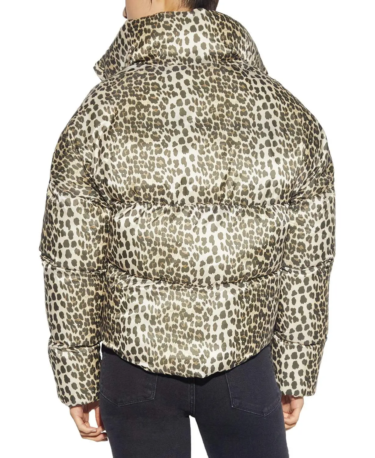 Apparis Women's Jackie Tan Leopard Print Puffer Jacket Coat