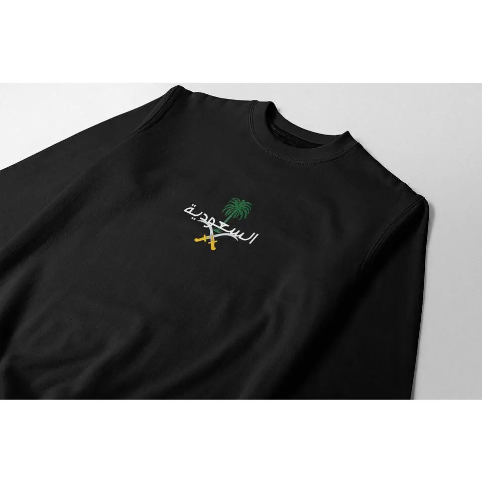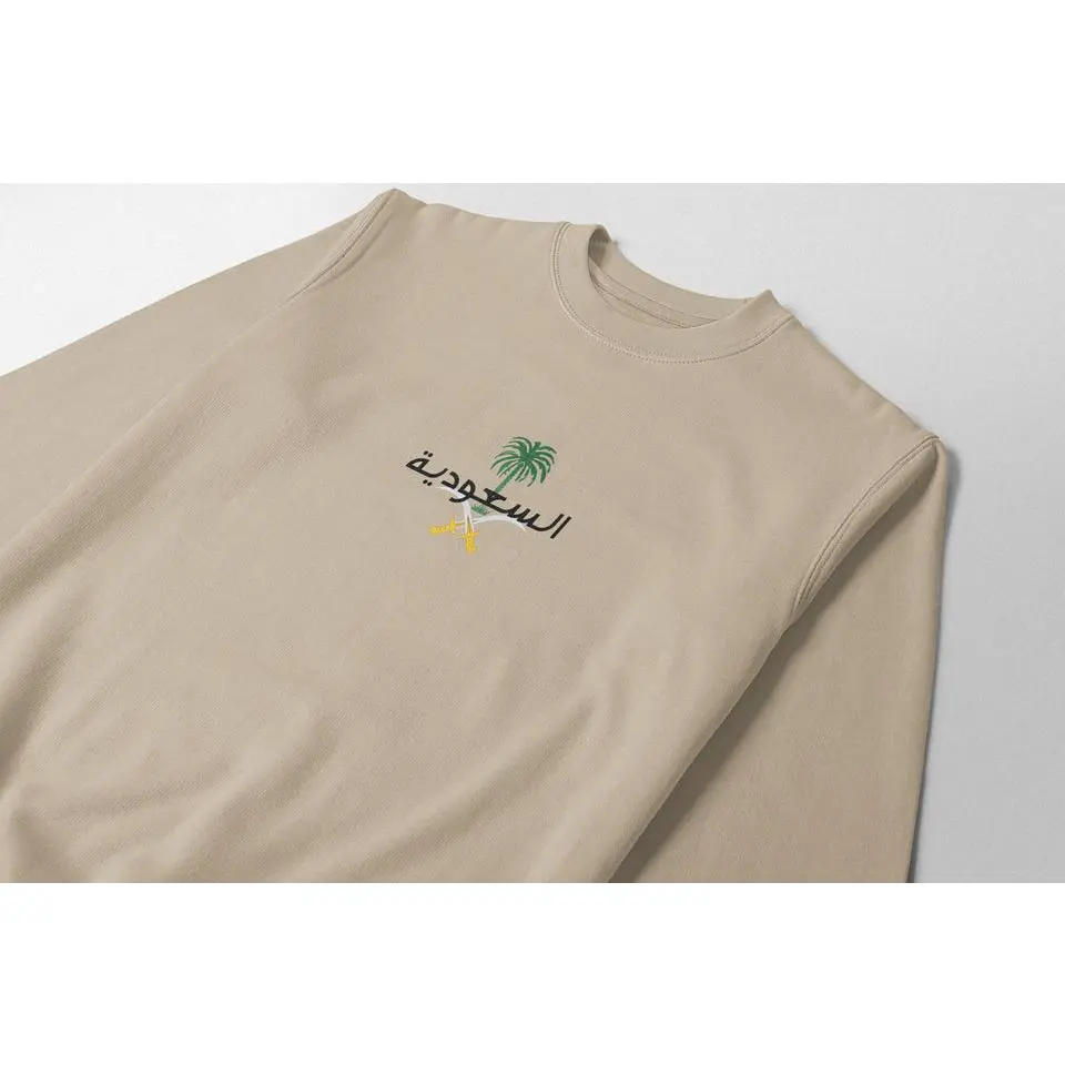 The Saudi Arabian (السعودية) national emblem was adopted in 1950. It consists of two crossed swords with a palm tree.The two swords represent the Kingdom of Hejaz and the Sultanate of Nejd and its dependencies, which were united under Ibn Saud in 1926, or strength, stamina, and sacrifice.The palm stands for growth, vitality, and prosperity and the crossed swords represent Justice. The palm tree represents the Kingdom's assets which are defined as its people, heritage, history, and resources natural and non-natural. Thus, the palm is shown to be guarded by the two swords, which represent the forces to be used in defense of the nation.