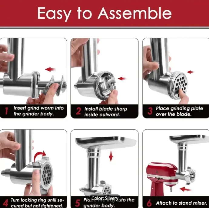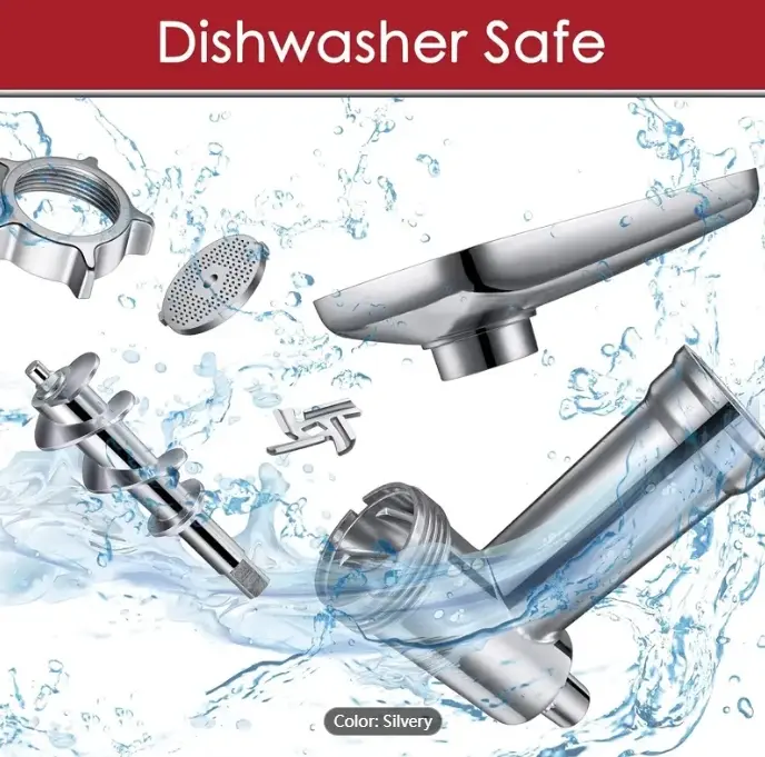 Metal Food Grinder Attachments For KitchenAid Stand Mixers, Meat Grinder, Sausage Stuffer, Perfect Attachment For KitchenAid Mixers, Silver (Machine/Mixer Not Included)